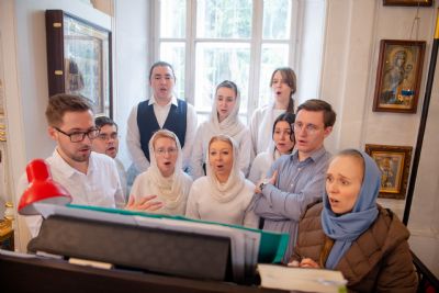 Песнопения исполнил смешанный приходской хор под управлением Дмитрия Дорофеева.