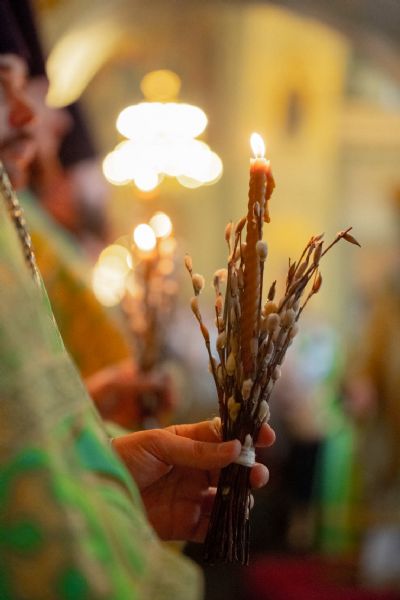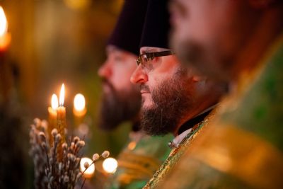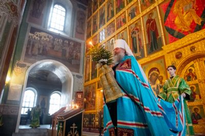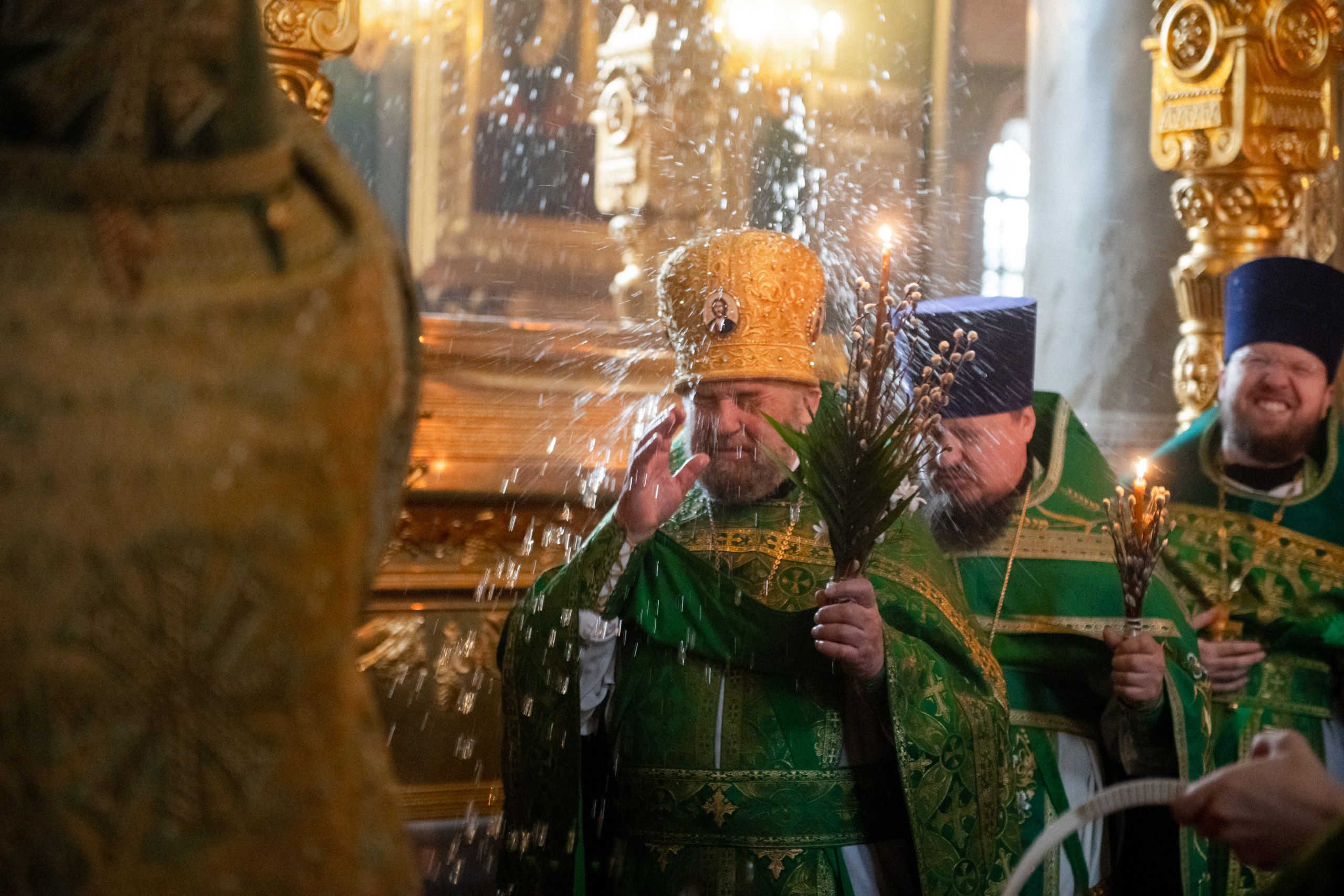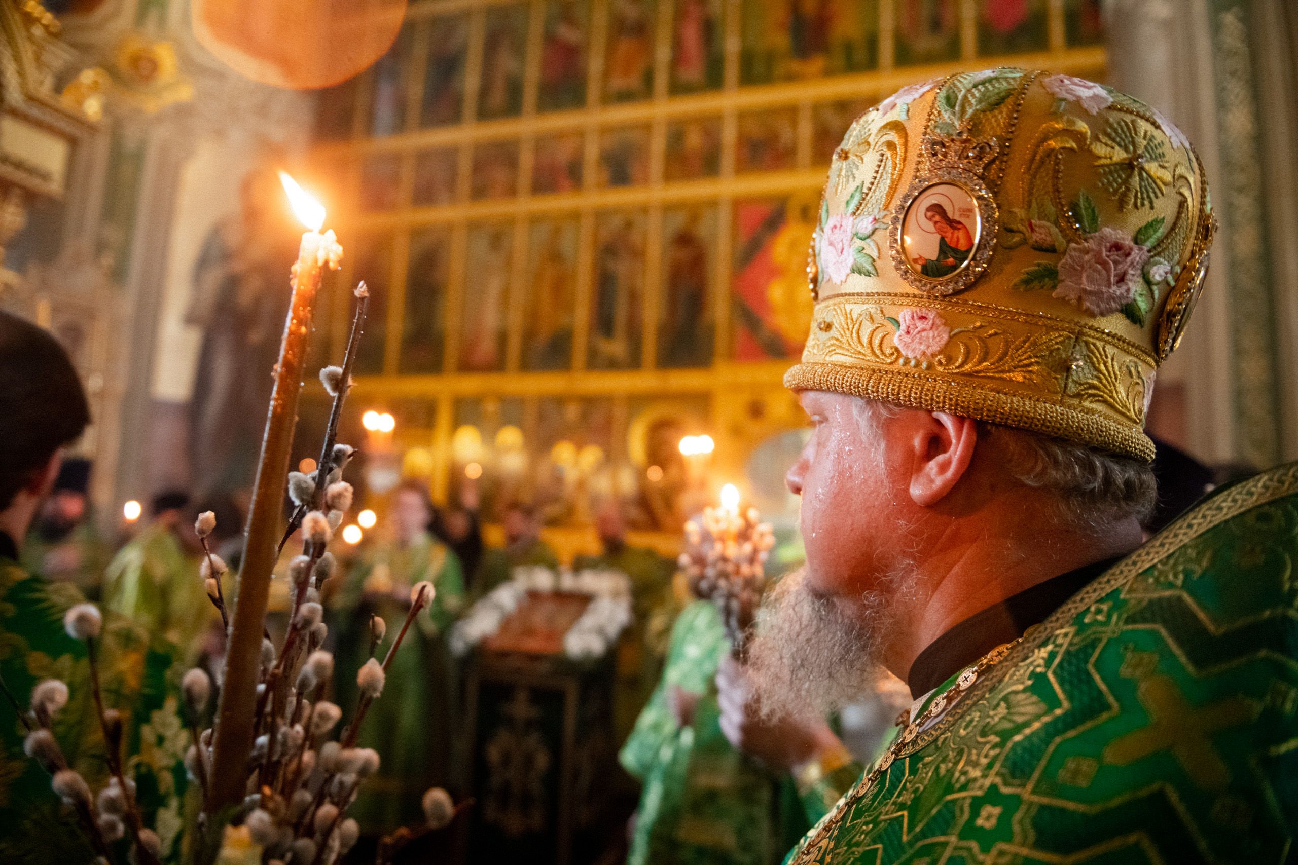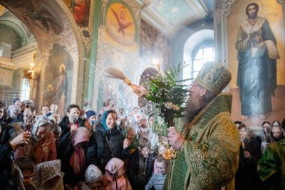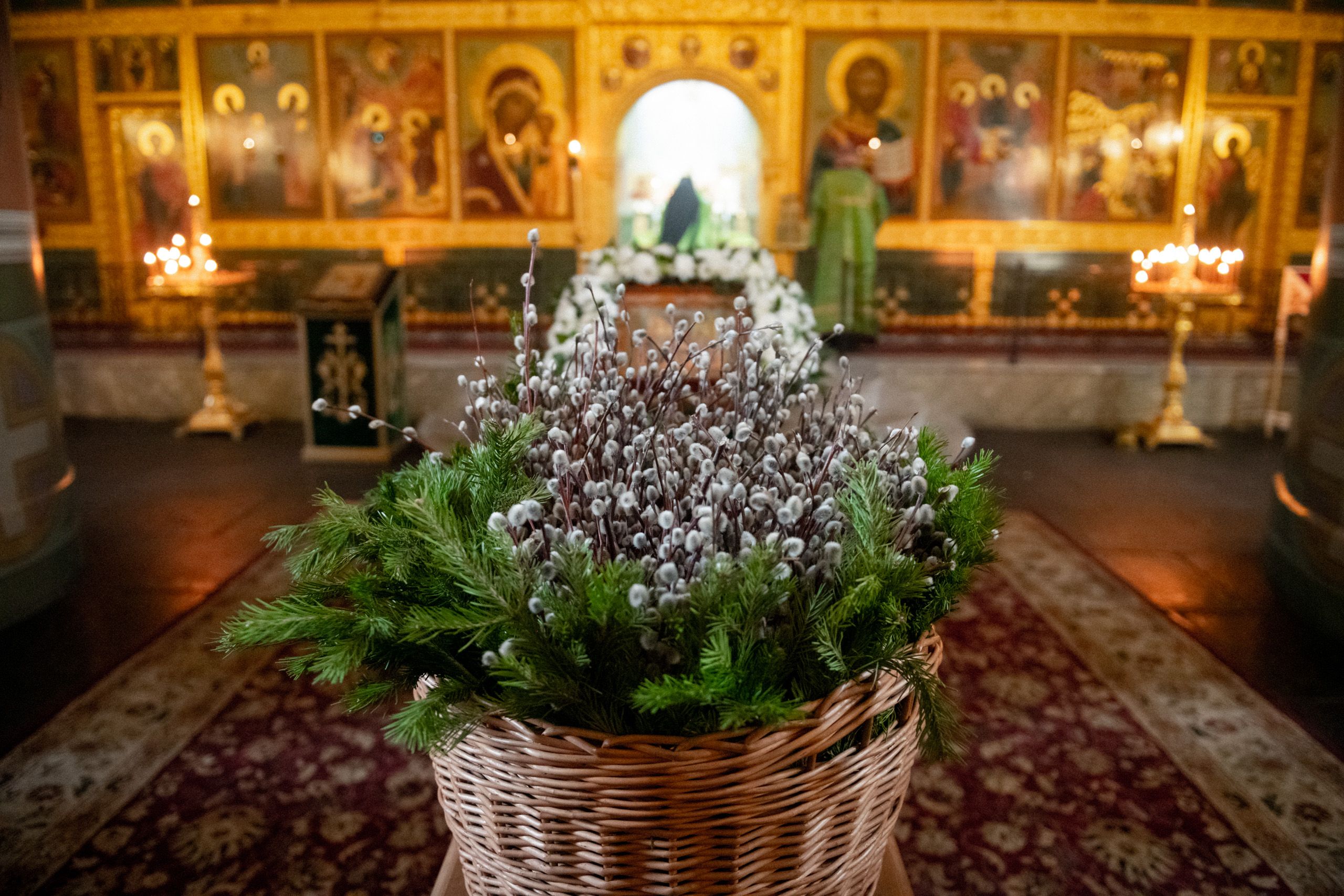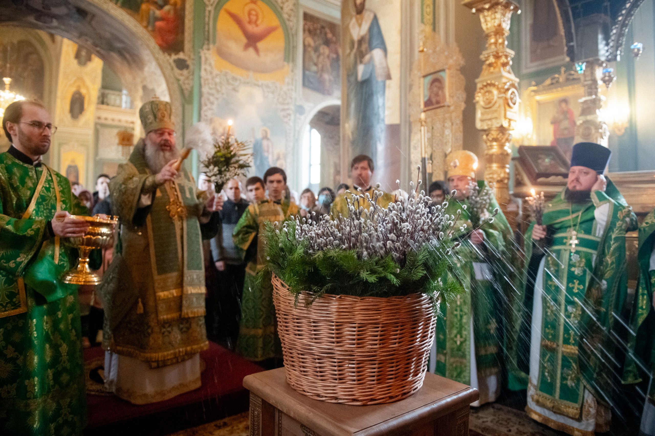 После заамвонной молитвы митрополит Кирилл прочитал молитву на освящение ваий и окропил вербы святой водой. Духовенство пропело тропарь, кондак и величание праздника Входа Господня в Иерусалим. Затем владыка Кирилл обратился к верующим со словом: