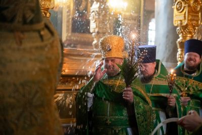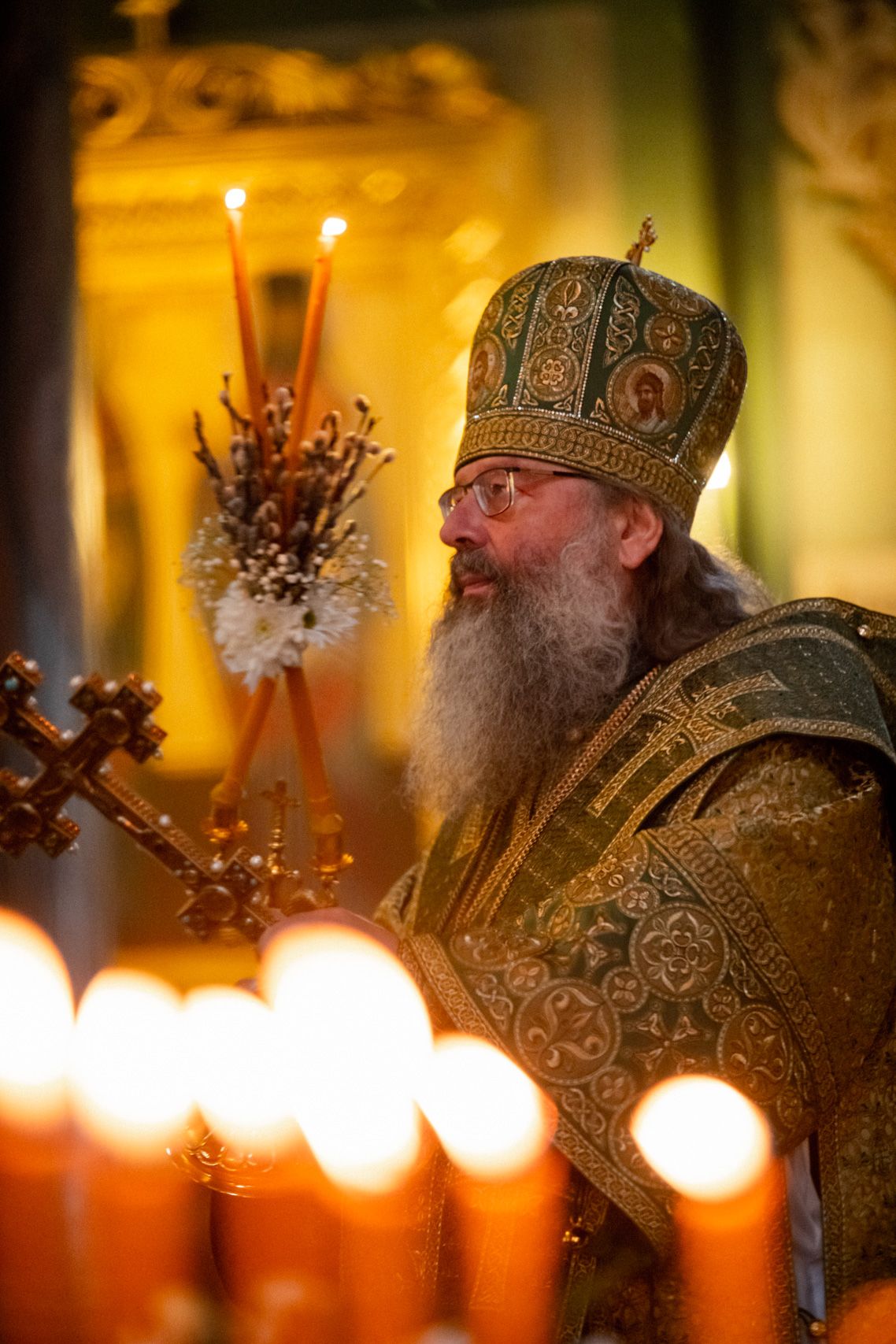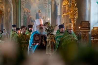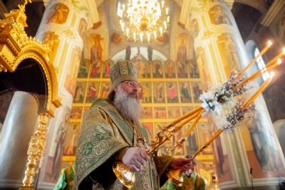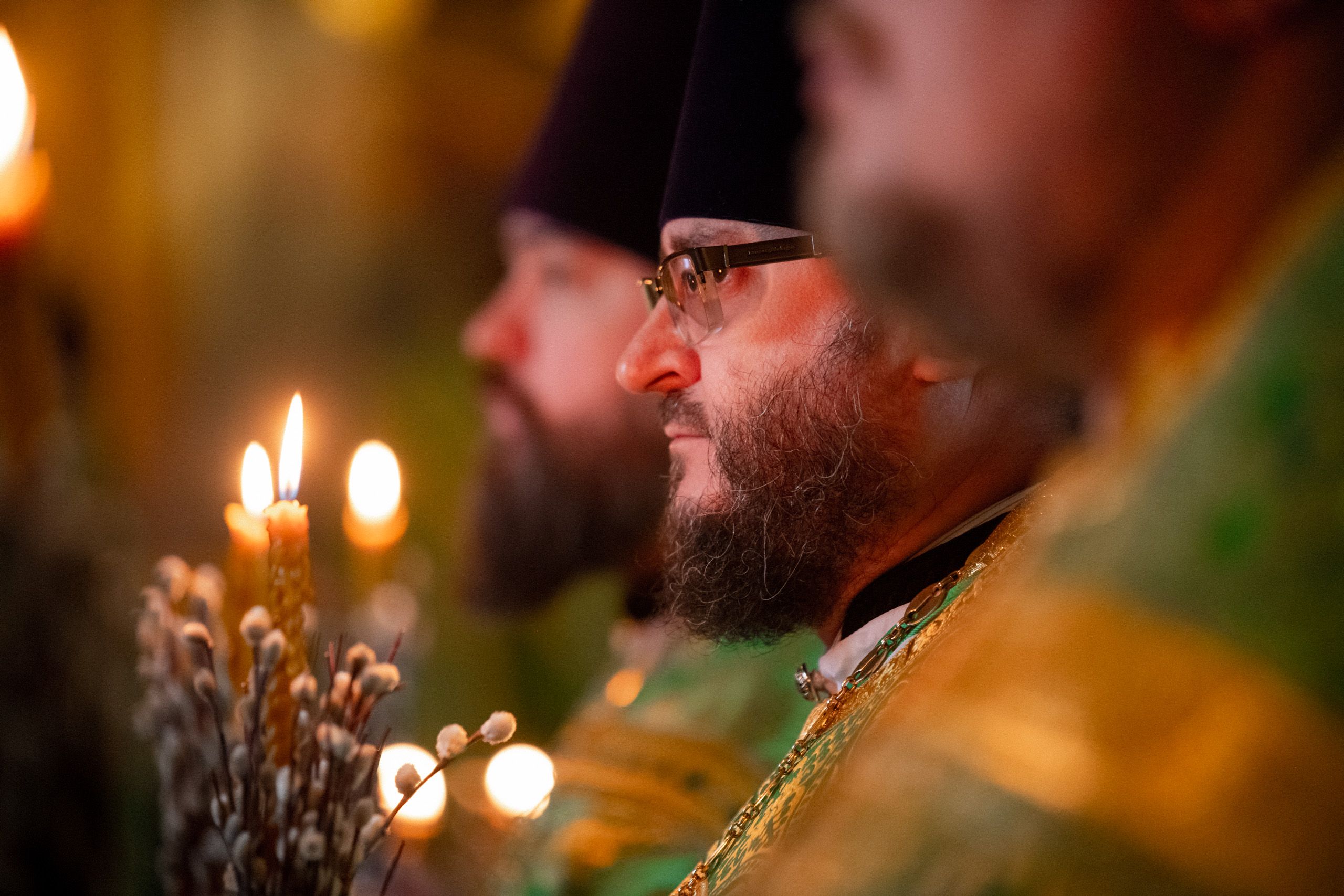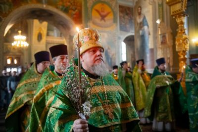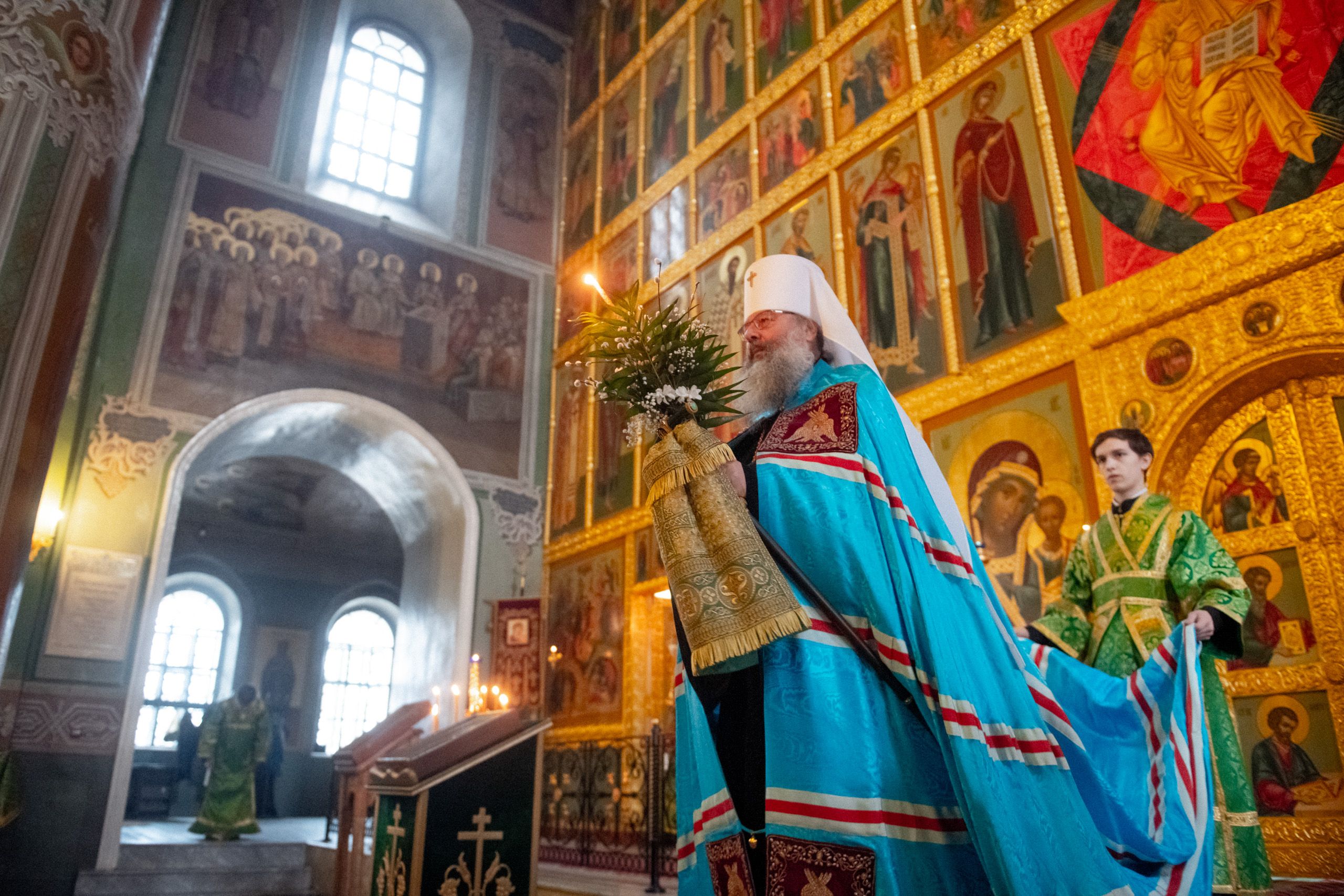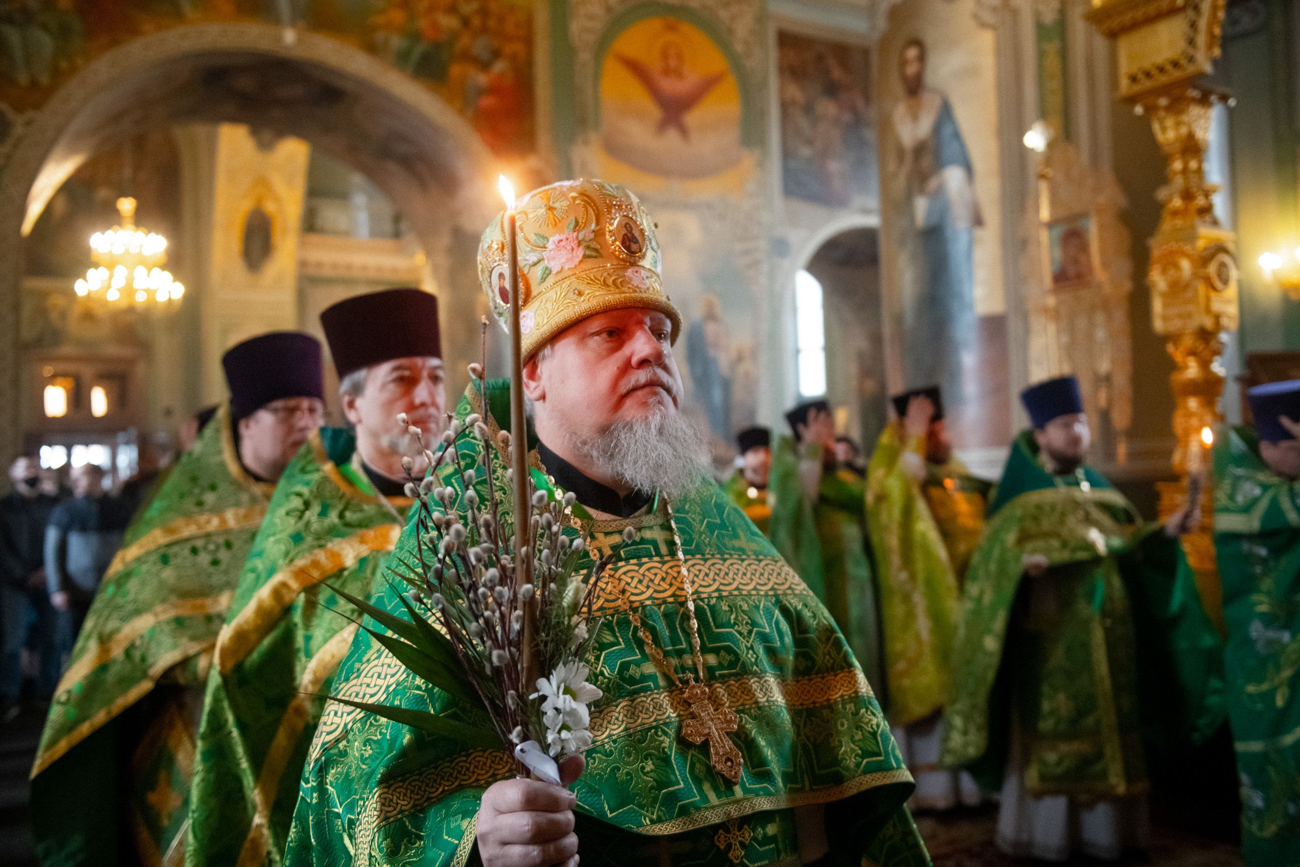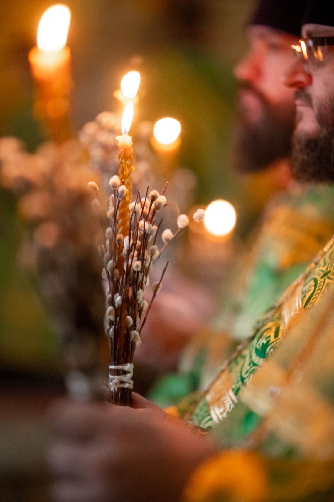 После заамвонной молитвы митрополит Кирилл прочитал молитву на освящение ваий и окропил вербы святой водой. Духовенство пропело тропарь, кондак и величание праздника Входа Господня в Иерусалим. Затем владыка Кирилл обратился к верующим со словом: