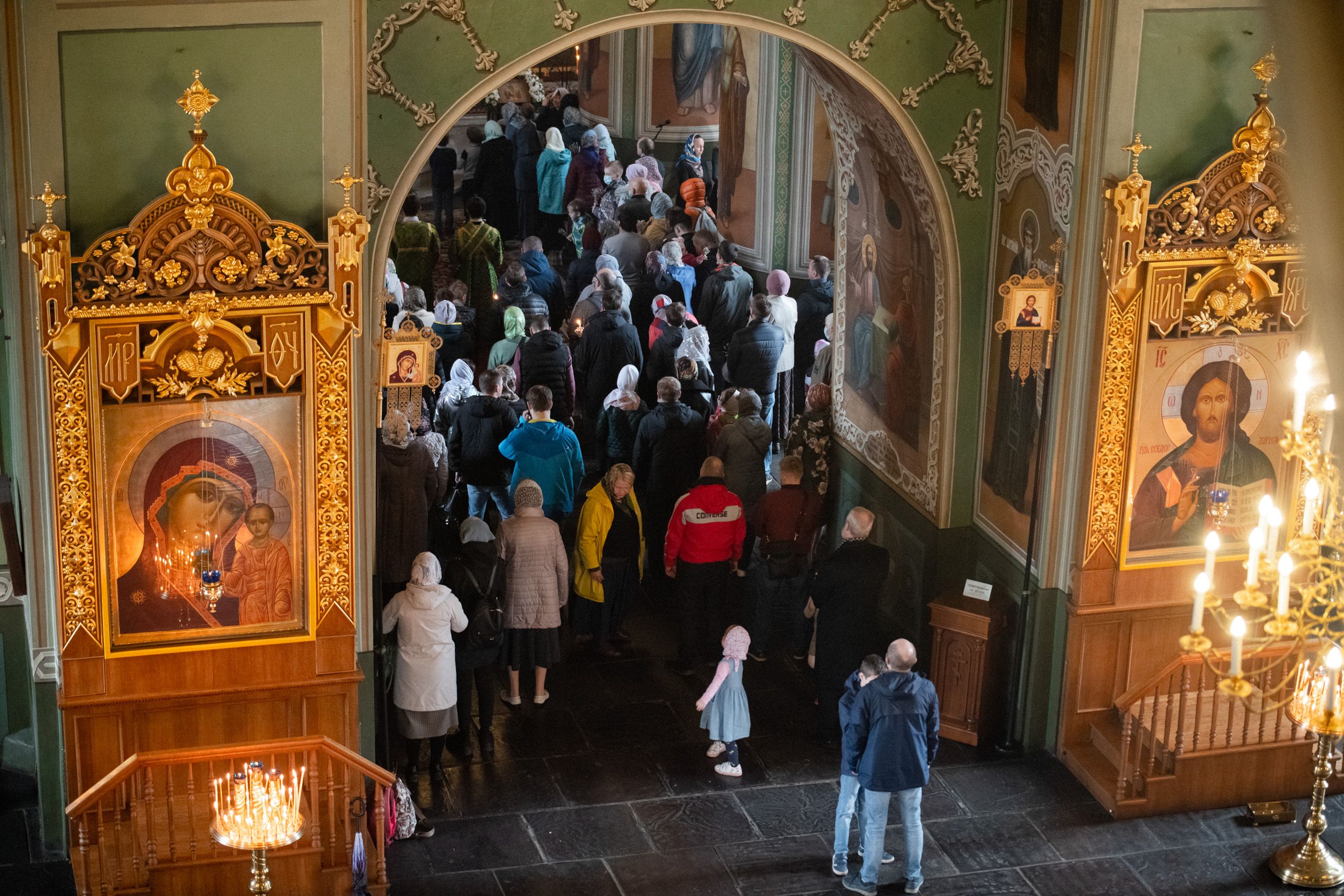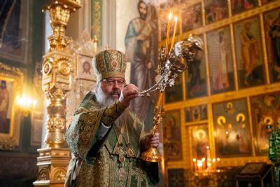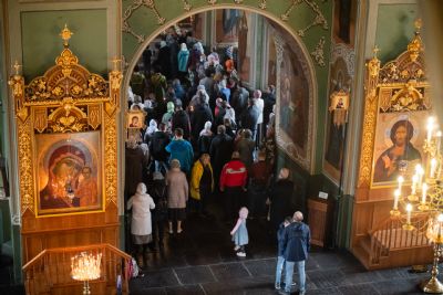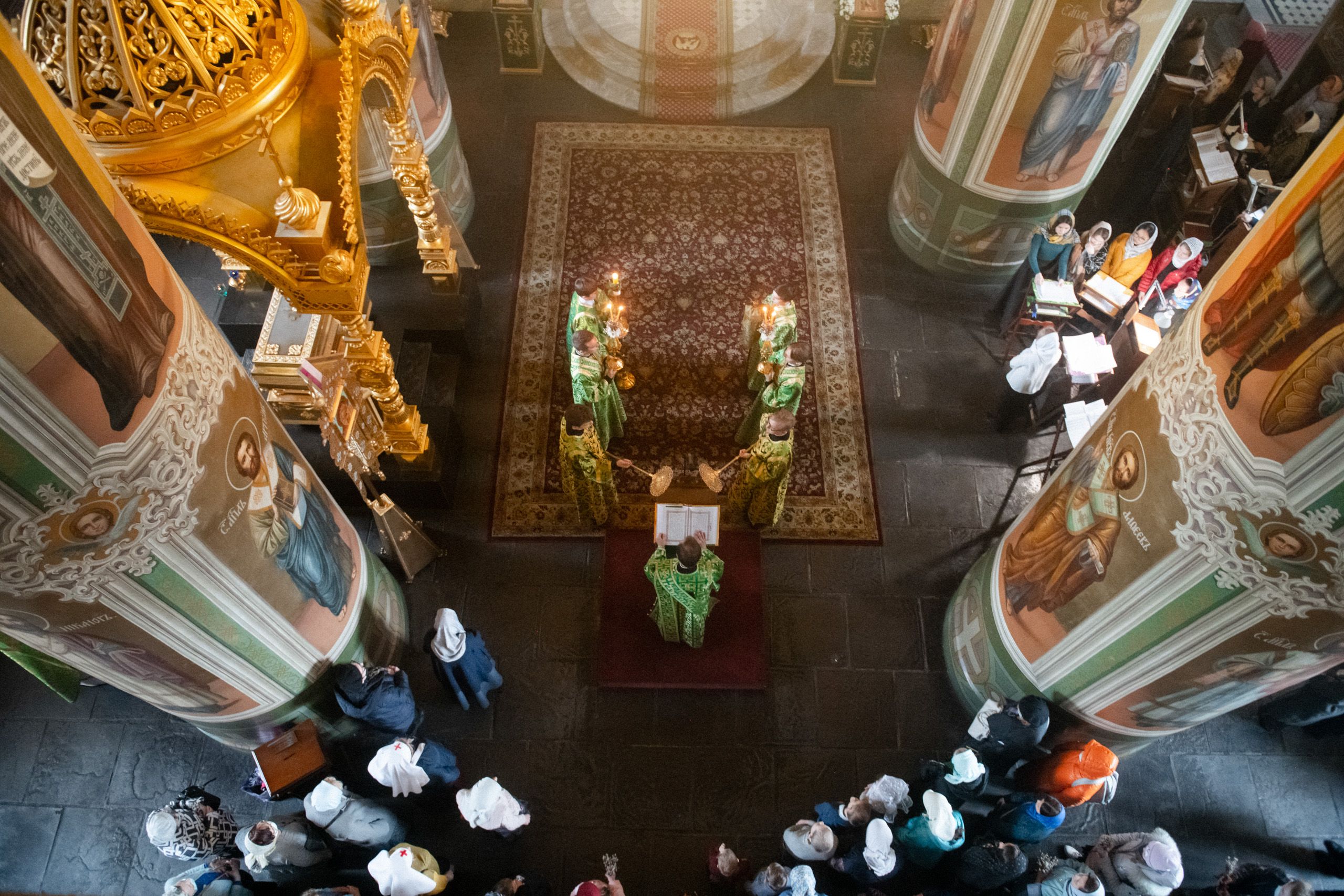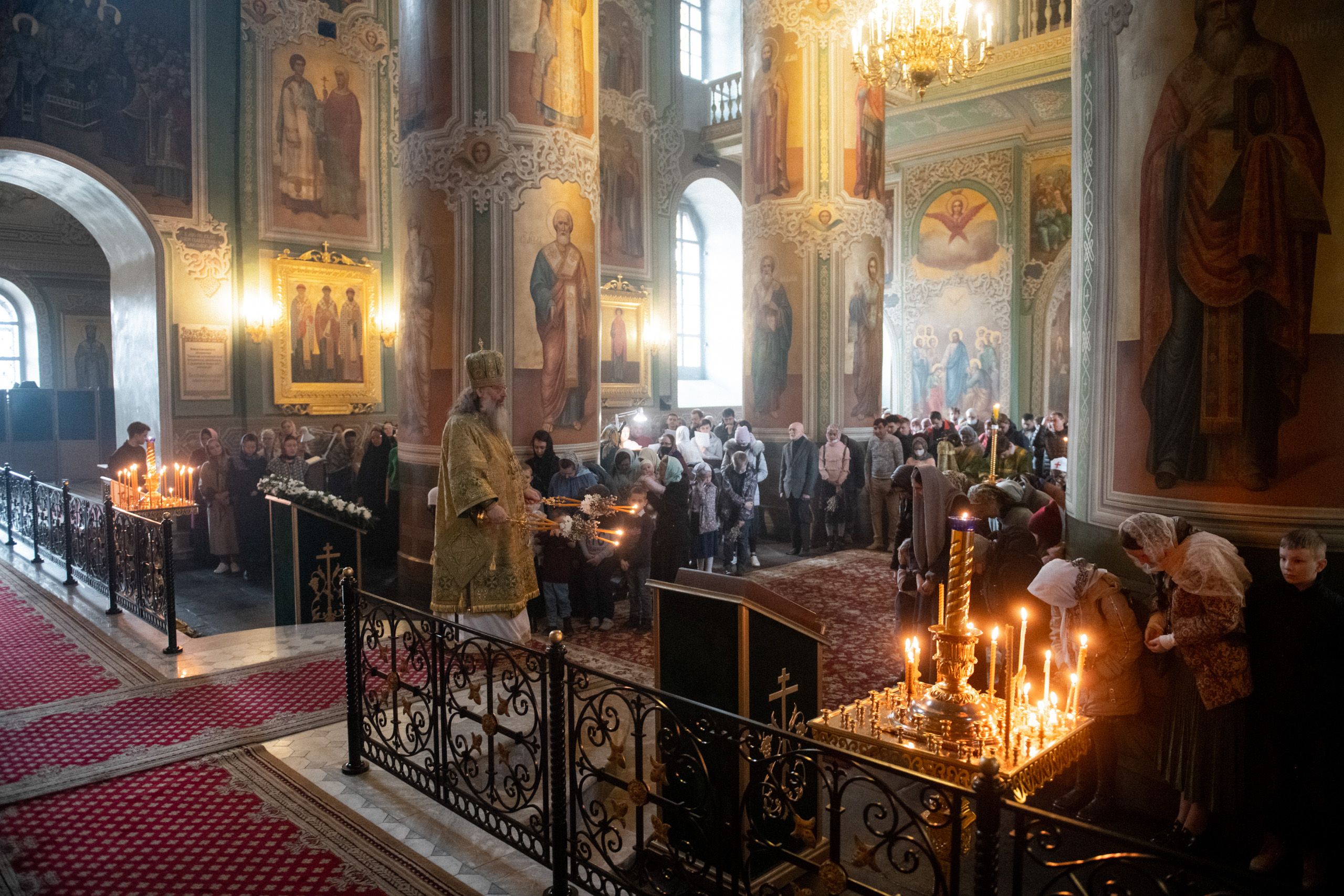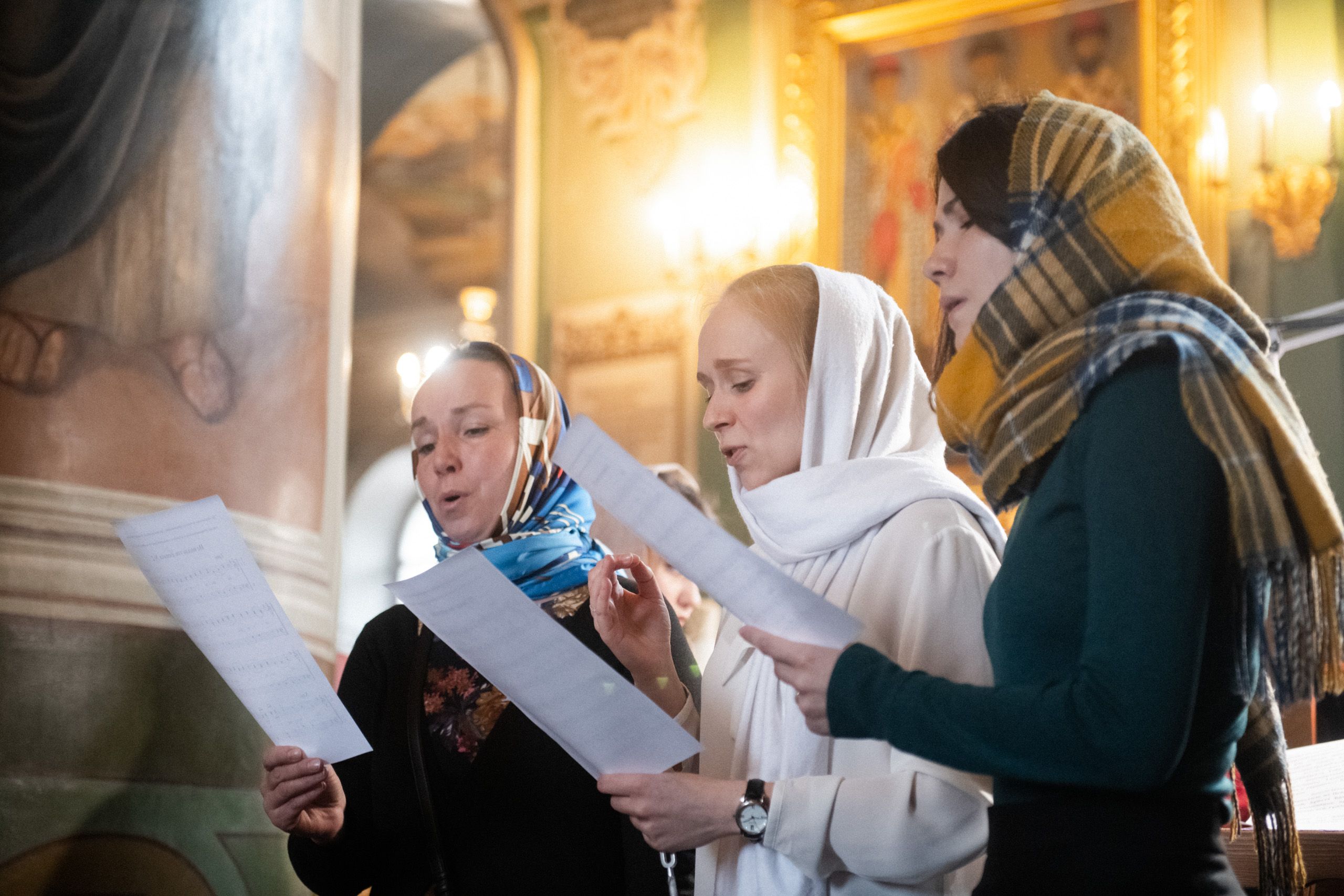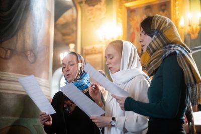 Богослужебные песнопения исполнили смешанный хор собора под управлением Марины Литвиненко и смешанный хор Казанско-Богородицкого монастыря под управлением монахини Амвросии (Кочережкиной).