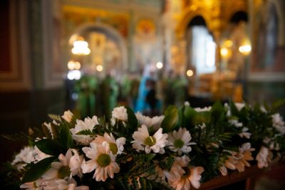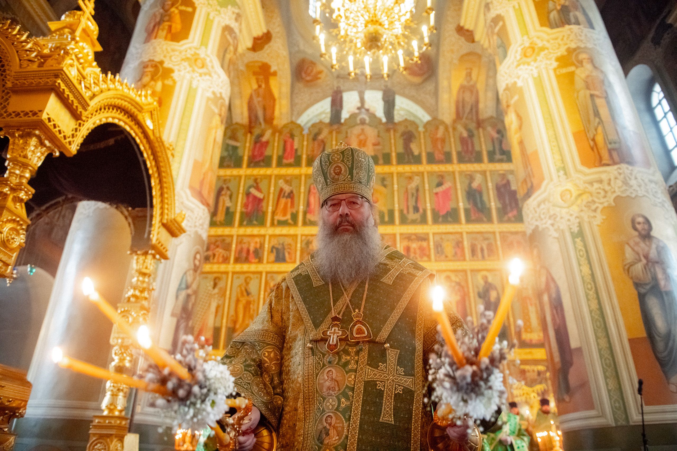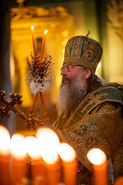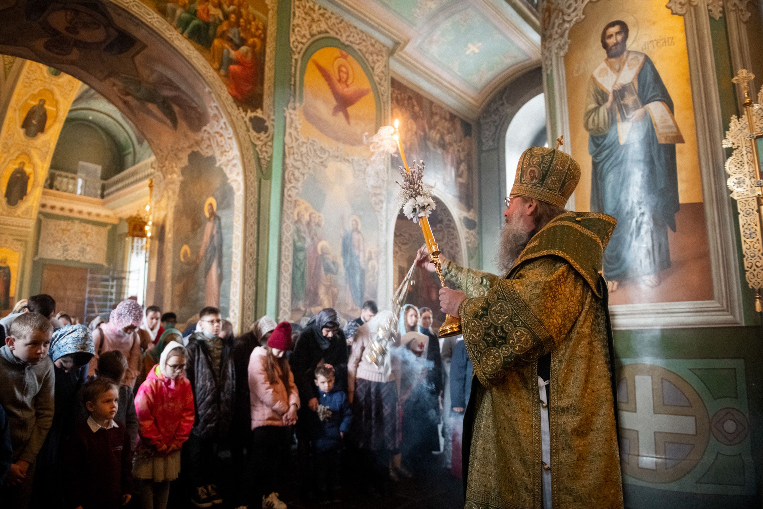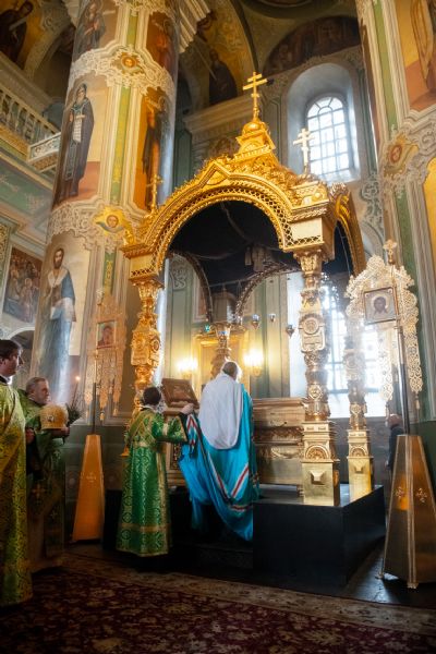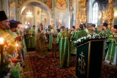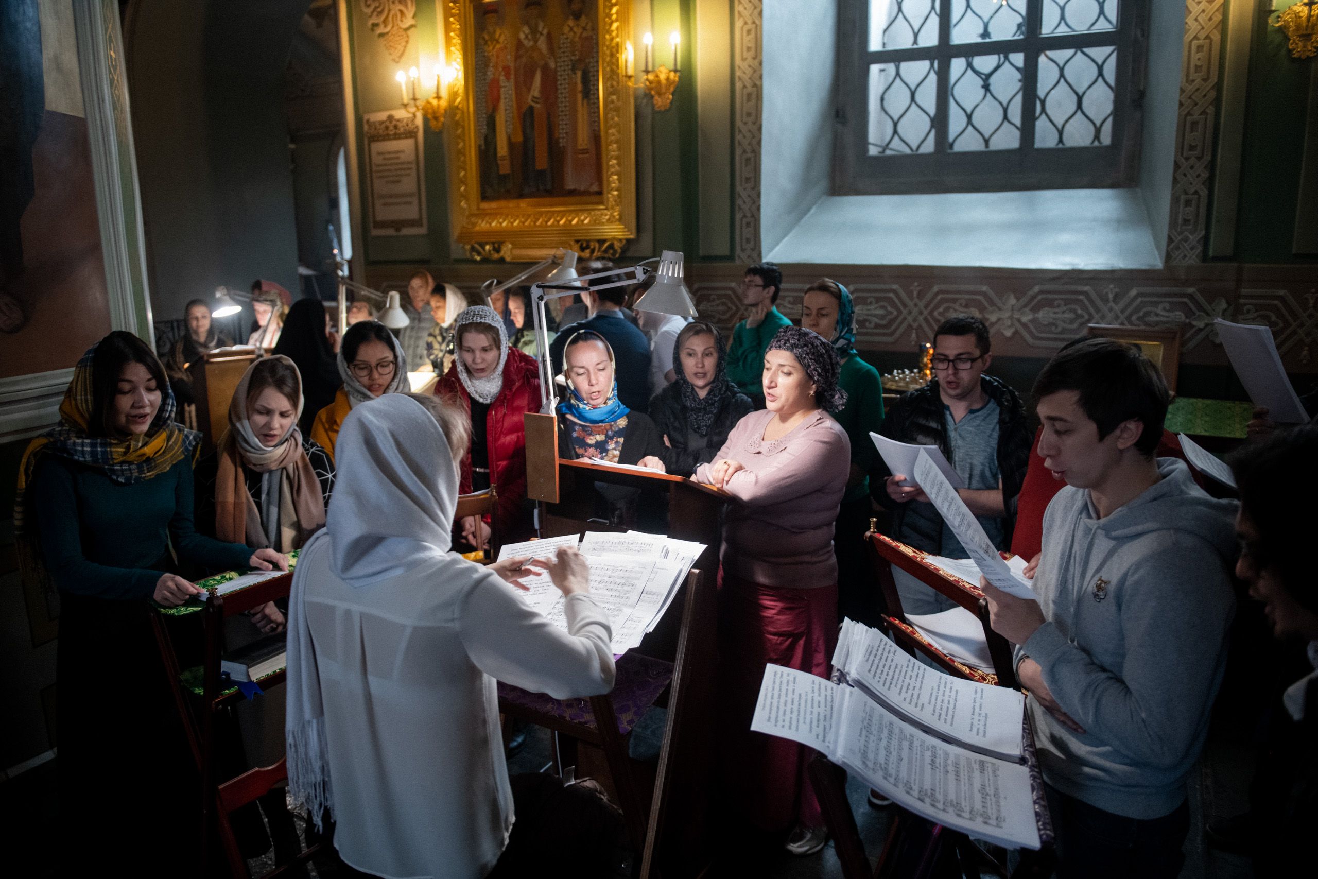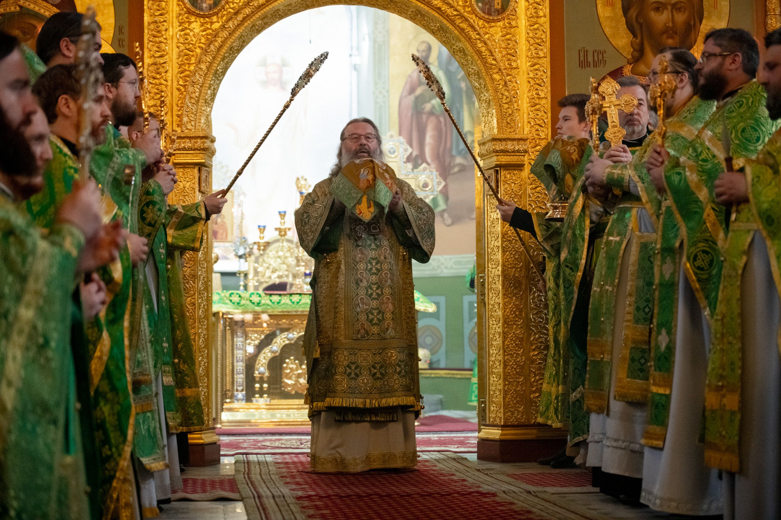 Богослужебные песнопения исполнили смешанный хор собора под управлением Марины Литвиненко и смешанный хор Казанско-Богородицкого монастыря под управлением монахини Амвросии (Кочережкиной).