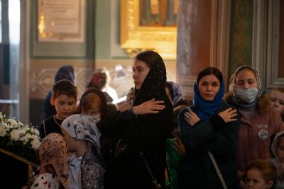 Среди молившихся за Литургией были педагоги и воспитанники городских воскресных школ.