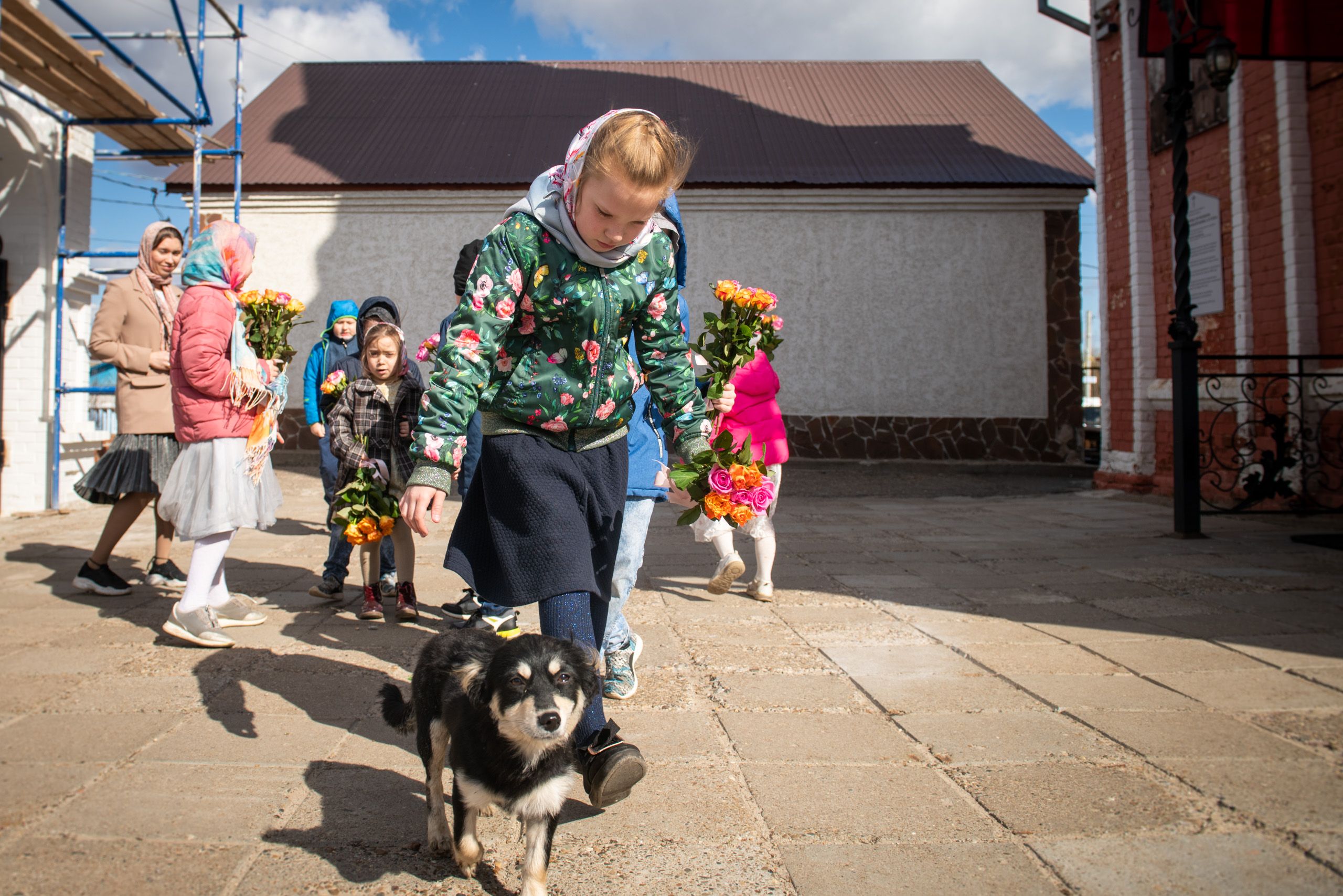 Я желаю всем нам с вами, чтобы мы, причастившись сегодня Святых Христовых Таин, оставались соединёнными с Богом в этой жизни. Тогда и в жизнь вечную мы войдём с Ним. Время Страстной седмицы дано, чтобы мы вошли в молитвенную тишину, погрузились в молитвословия, которые Святая Церковь предлагает на этой седмице, чтобы мы сопереживали Христу, Который, восходя в Иерусалим в славе Своей, шёл на крестную смерть — на смерть, которую Он принимает добровольно, ради нас с вами. Господь совершает подвиг, спасительный для всего человечества, для каждого из нас. А мы разве не должны совершить хоть малый подвиг, чтобы не отойти от Него в своей жизни?
