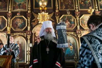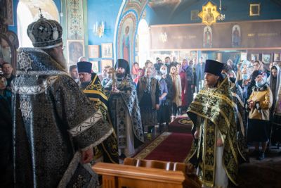 На заупокойной ектении было совершено поминовение жертв Чернобыльской катастрофы — сегодня исполнилось 35 лет со дня трагедии. Проповедь по запричастном стихе произнёс протоиерей Алексий Державин. В конце богослужения состоялось славление перед Почаевской иконой Пресвятой Богородицы.