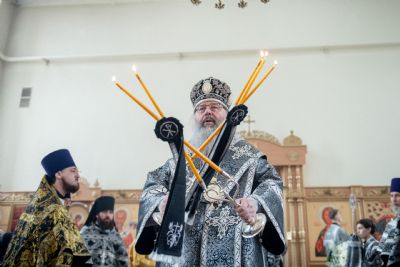 После пения «Буди имя Господне…» митрополит Кирилл совершил последние в этом году три земных поклона с чтением молитвы преподобного Ефрема Сирина.