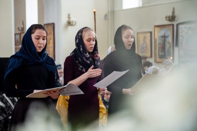 Богослужебные песнопения исполнили смешанный хор Казанской духовной семинарии под руководством Марины Литвиненко и приходской хор под управлением Ольги Толстик.
