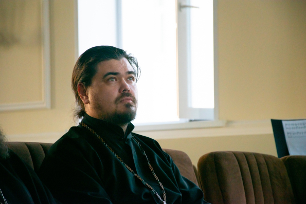 После этого проректор по воспитательной работе семинарии иеромонах Кирилл (Забавнов) зачитал обзорный доклад, посвященный святым и неканонизированным церковным деятелям, чьи имена связаны с Казанским краем и казанскими духовными школами.