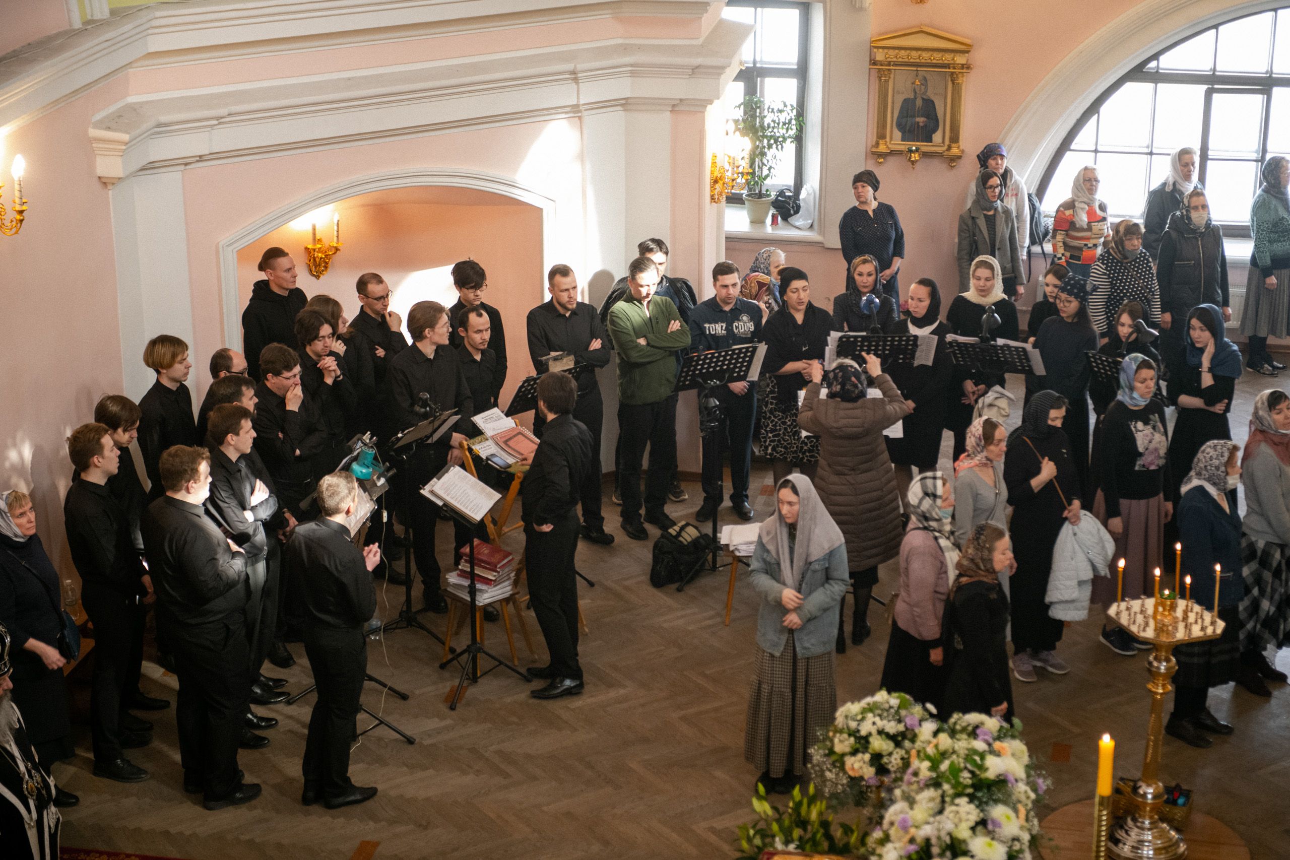 Богослужебные песнопения исполнили архиерейский мужской хор под управлением Дениса Рогова и смешанный хор Благовещенского собора Казанского кремля под управлением Марины Литвиненко.