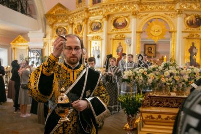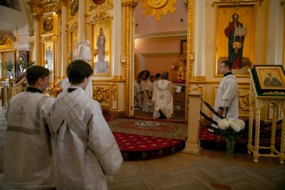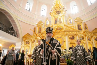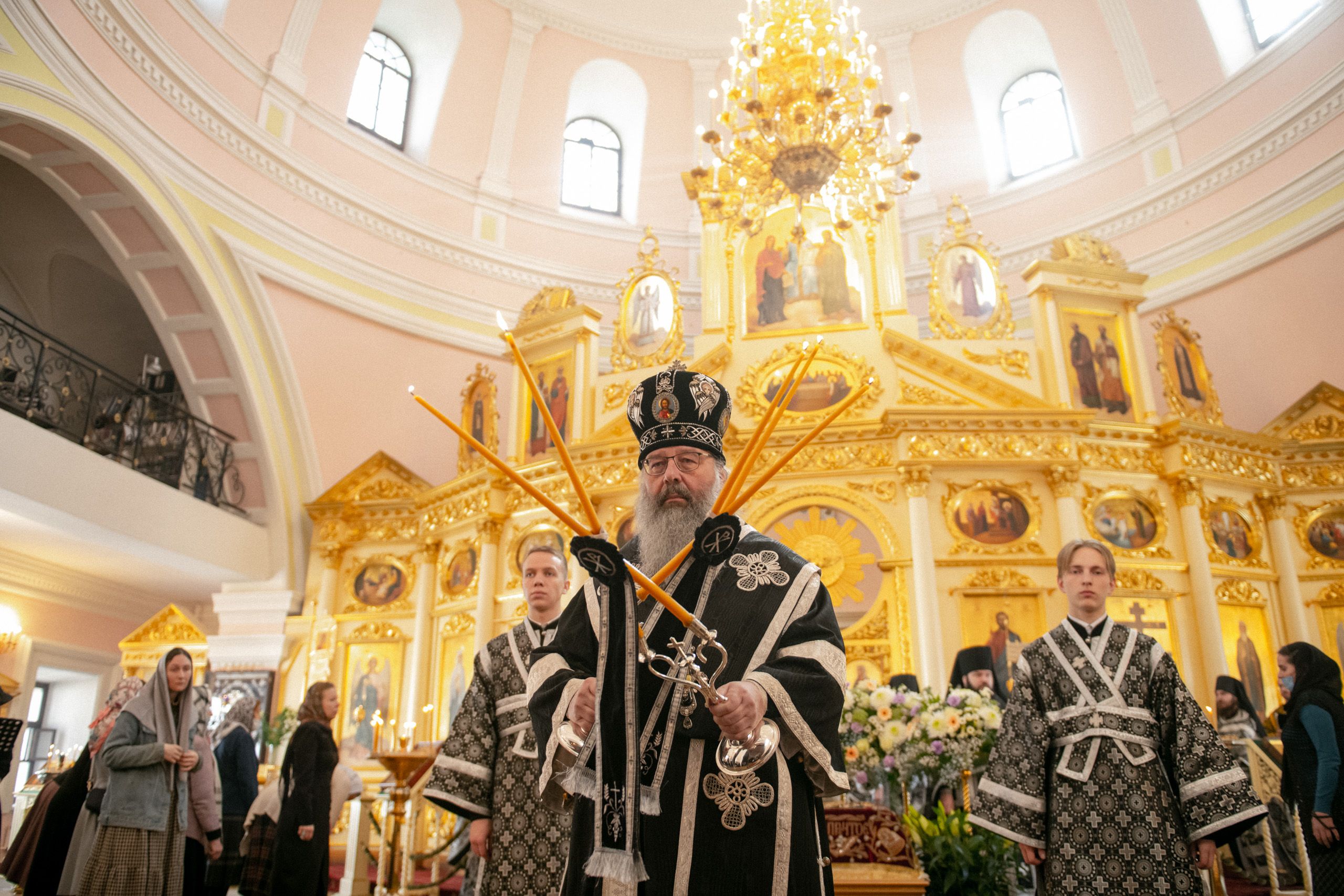 По окончании Литургии правящий архиерей поздравил духовенство и верующих с окончанием Страстной седмицы и грядущей Пасхой Христовой и обратился к молящимся со словом: