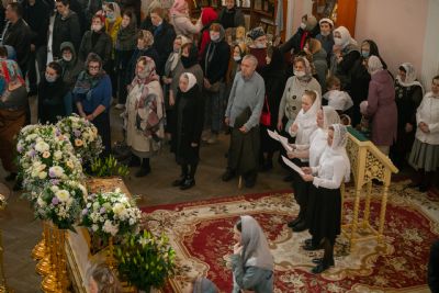 1 мая 2021 года, в Великую Субботу, митрополит Казанский и Татарстанский Кирилл совершил вечерню с Литургией святителя Василия Великого в Крестовоздвиженском храме Казанско-Богородицкого мужского монастыря.