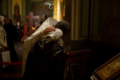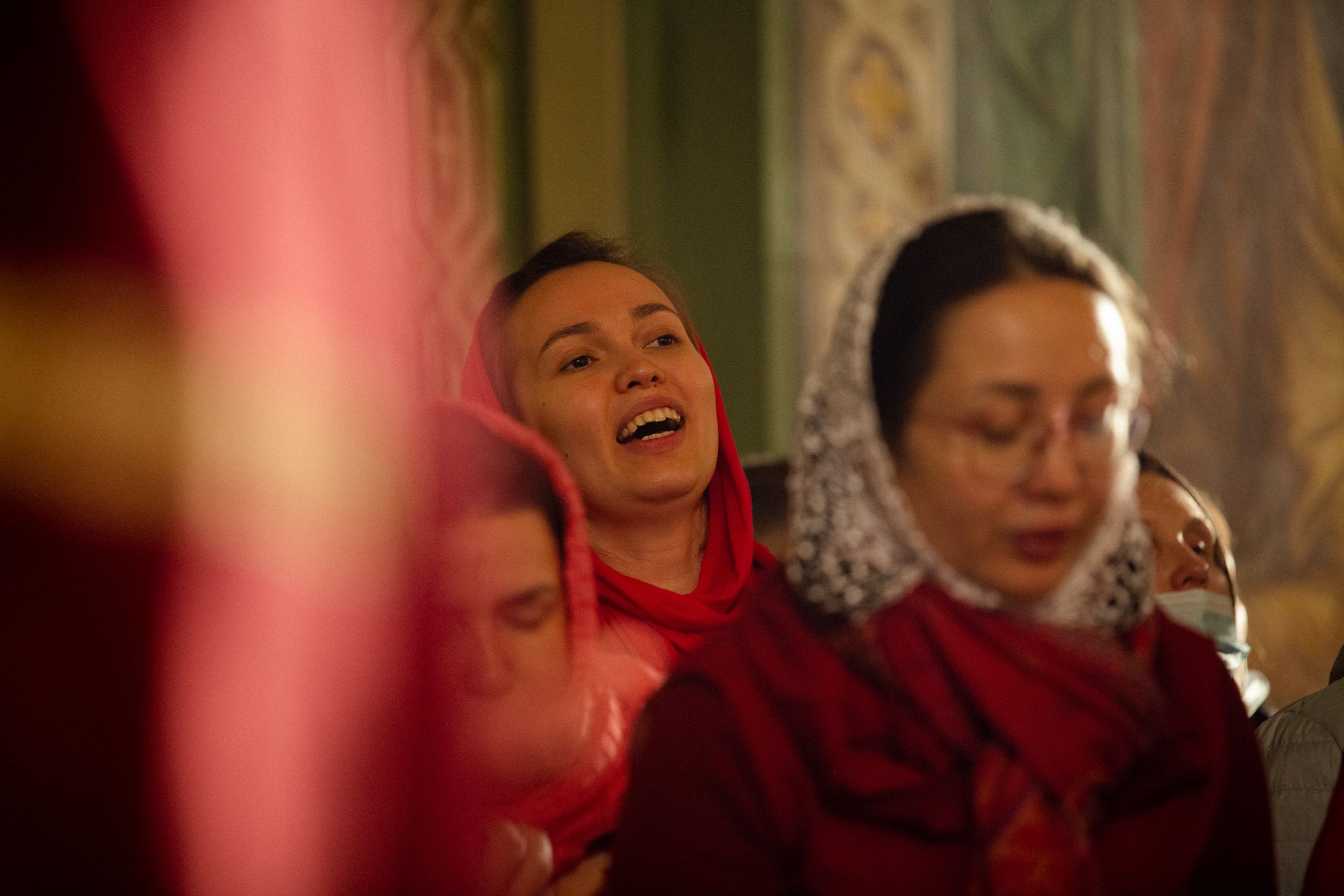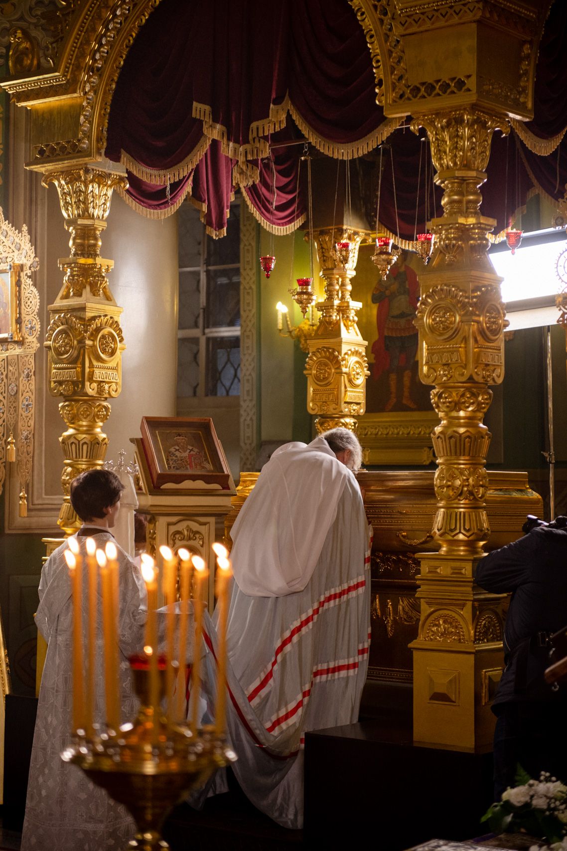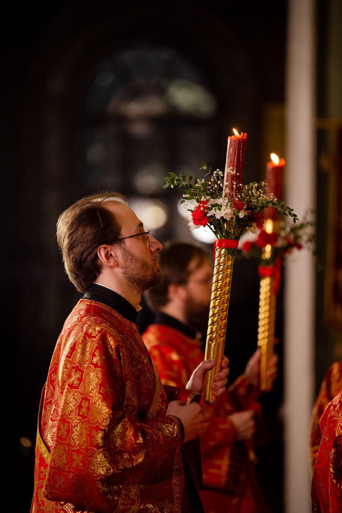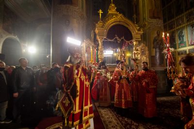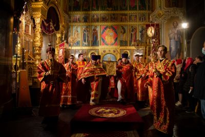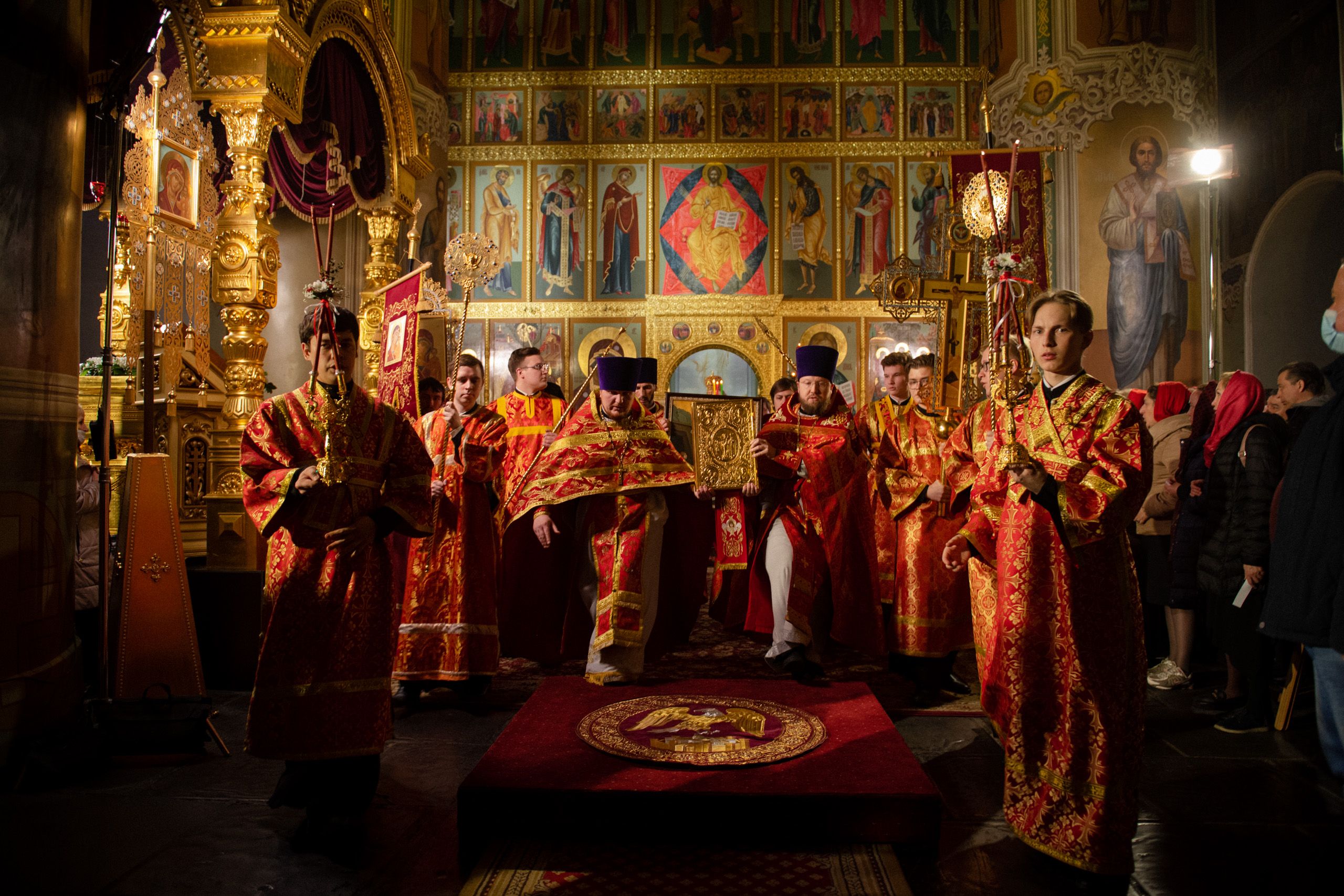 Во время полунощницы священнослужителями на середине храма был прочитан канон Великой Субботы. После 9-й песни канона Святая Плащаница была внесена в алтарь и положена на престол, где будет оставаться до отдания Пасхи.