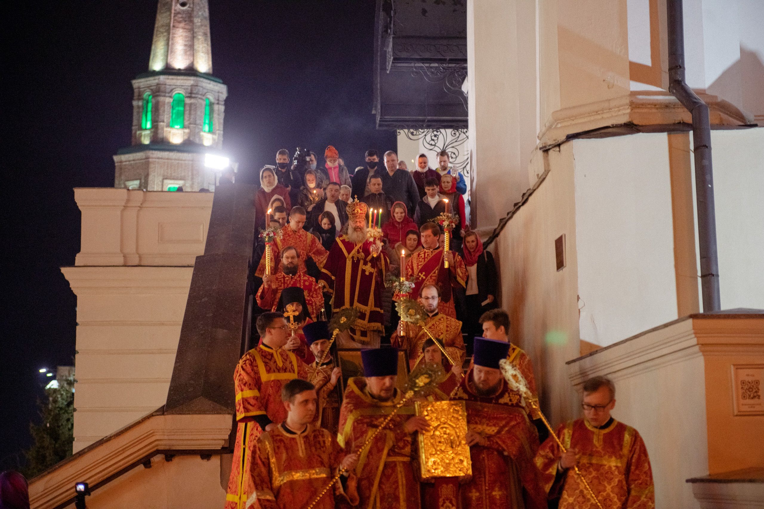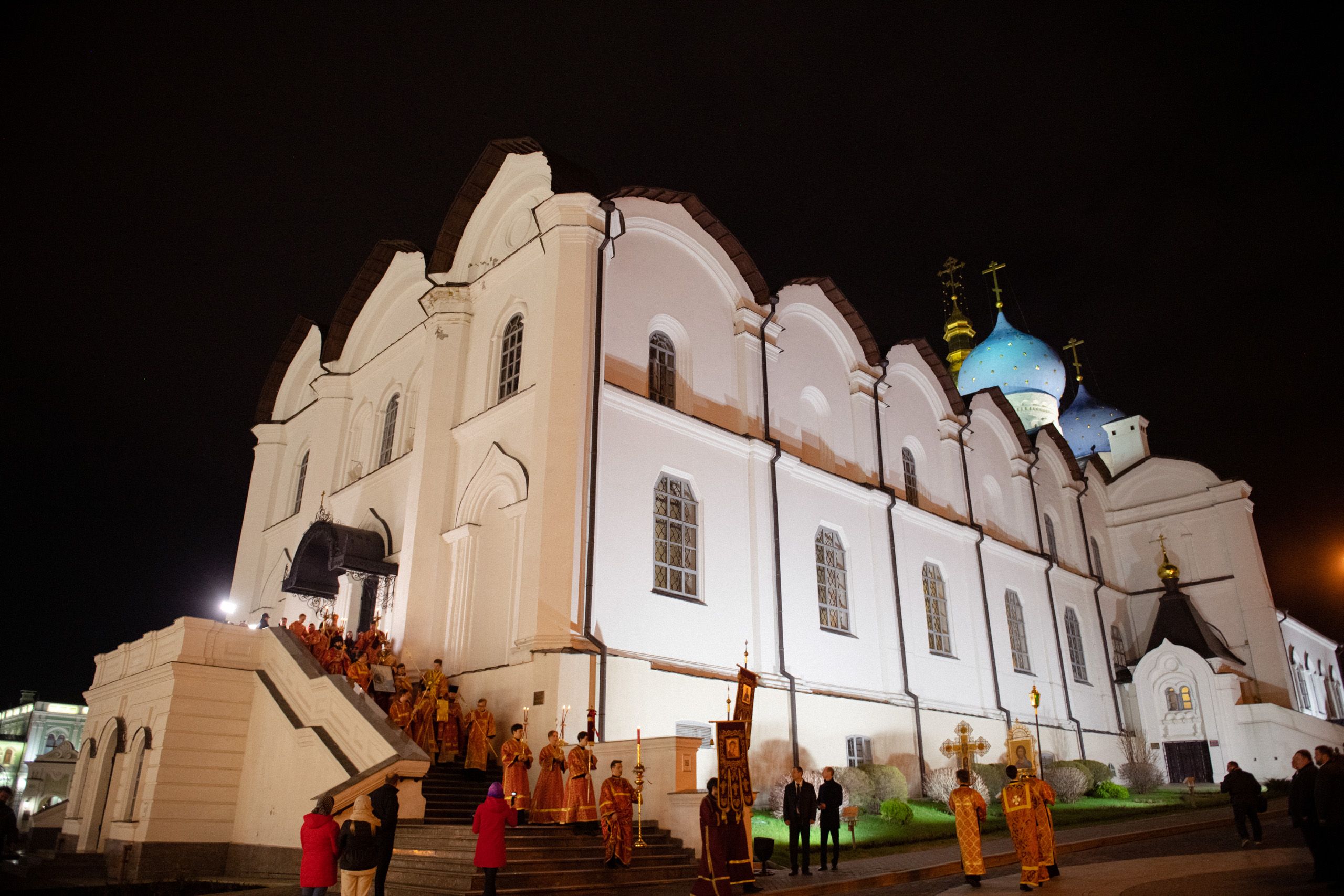 В ночь с 1 на 2 мая 2021 года, в праздник Светлого Христова Воскресения, митрополит Казанский и Татарстанский Кирилл совершил пасхальную заутреню и Божественную литургию в Благовещенском соборе Казанского кремля.