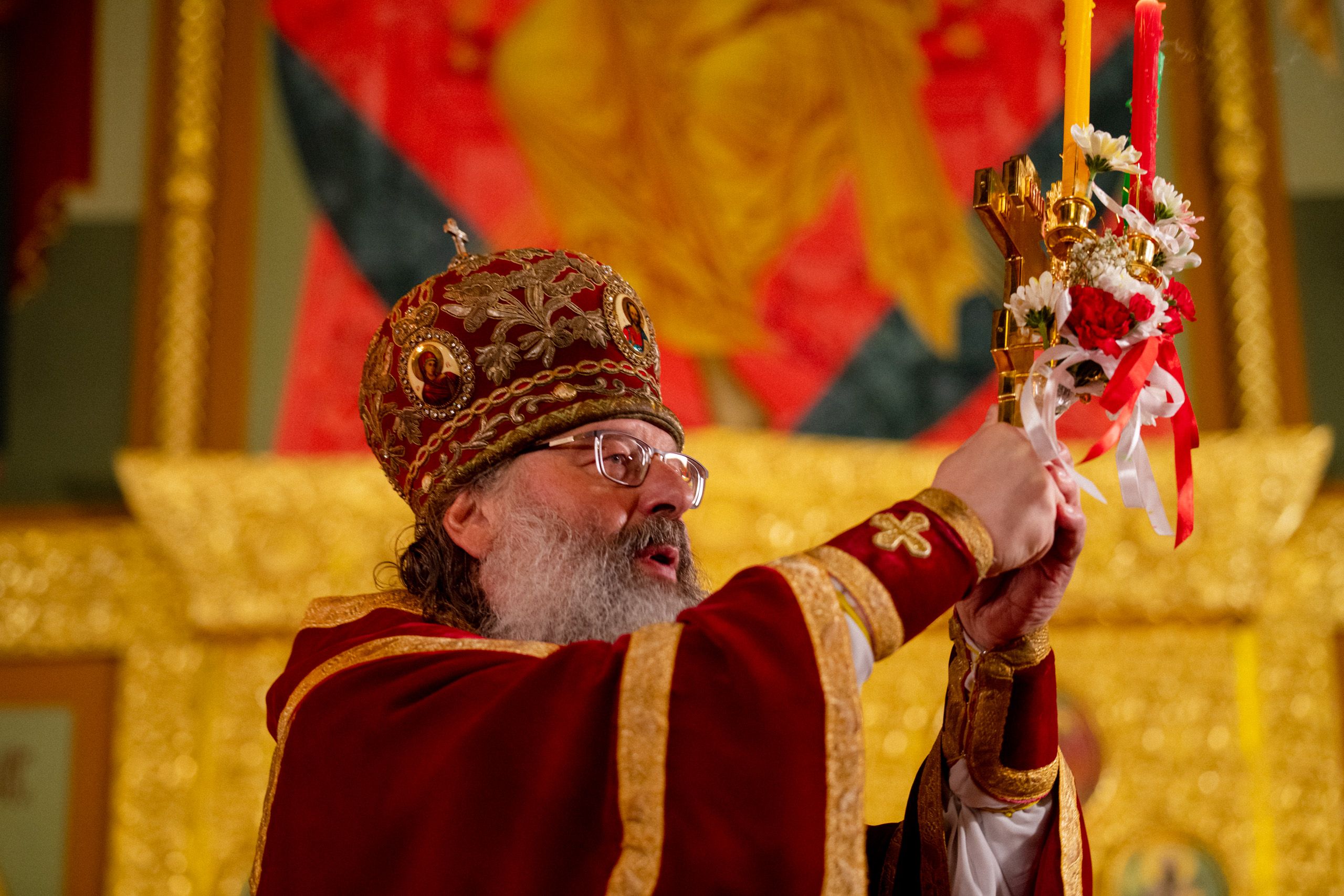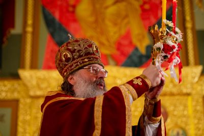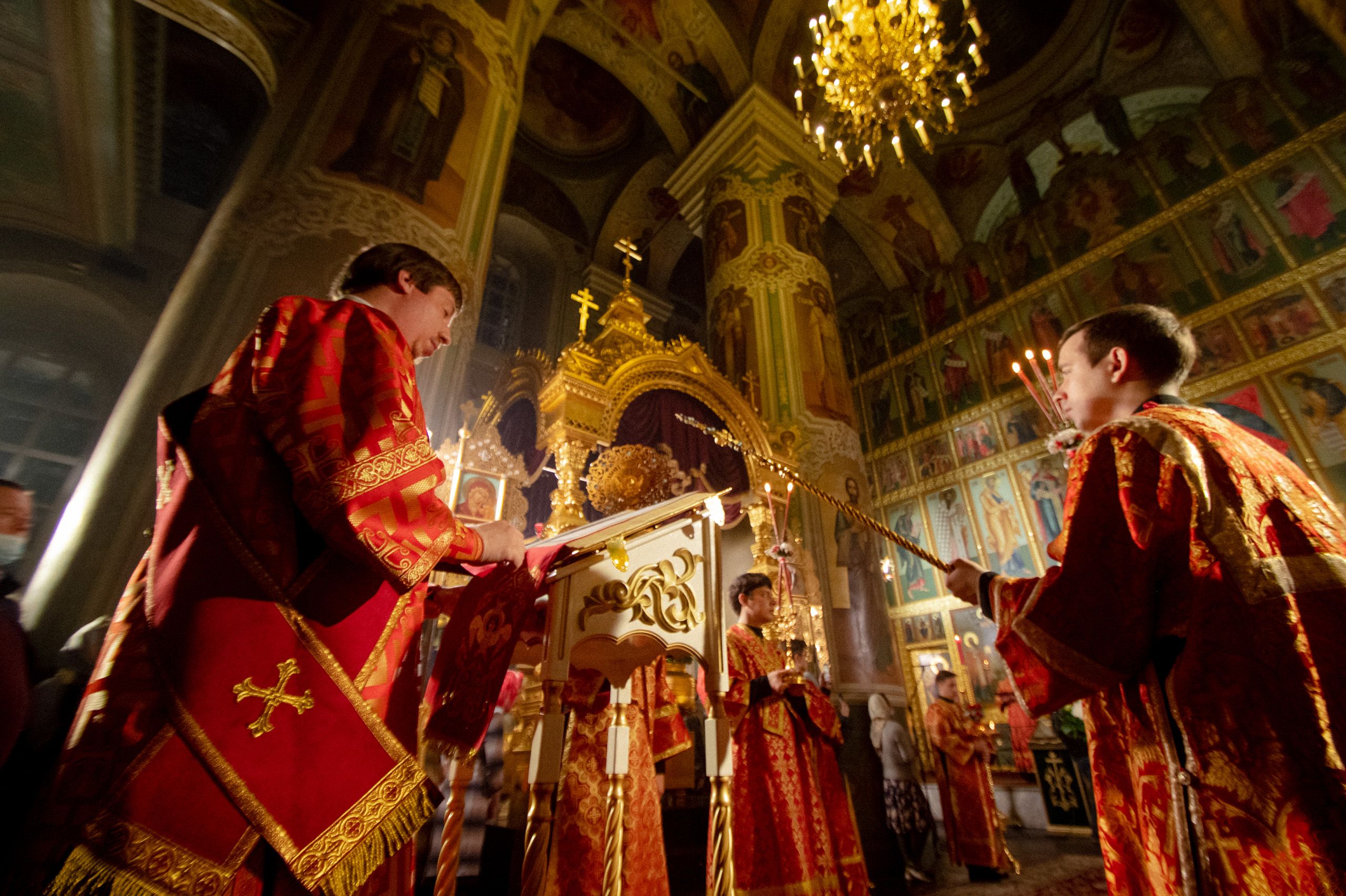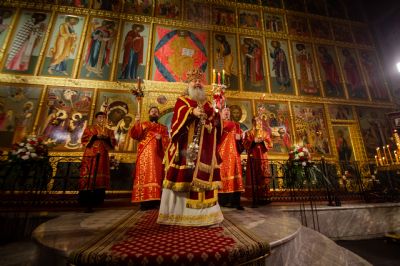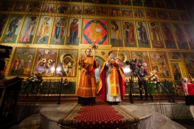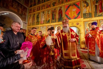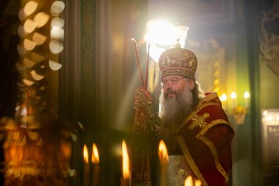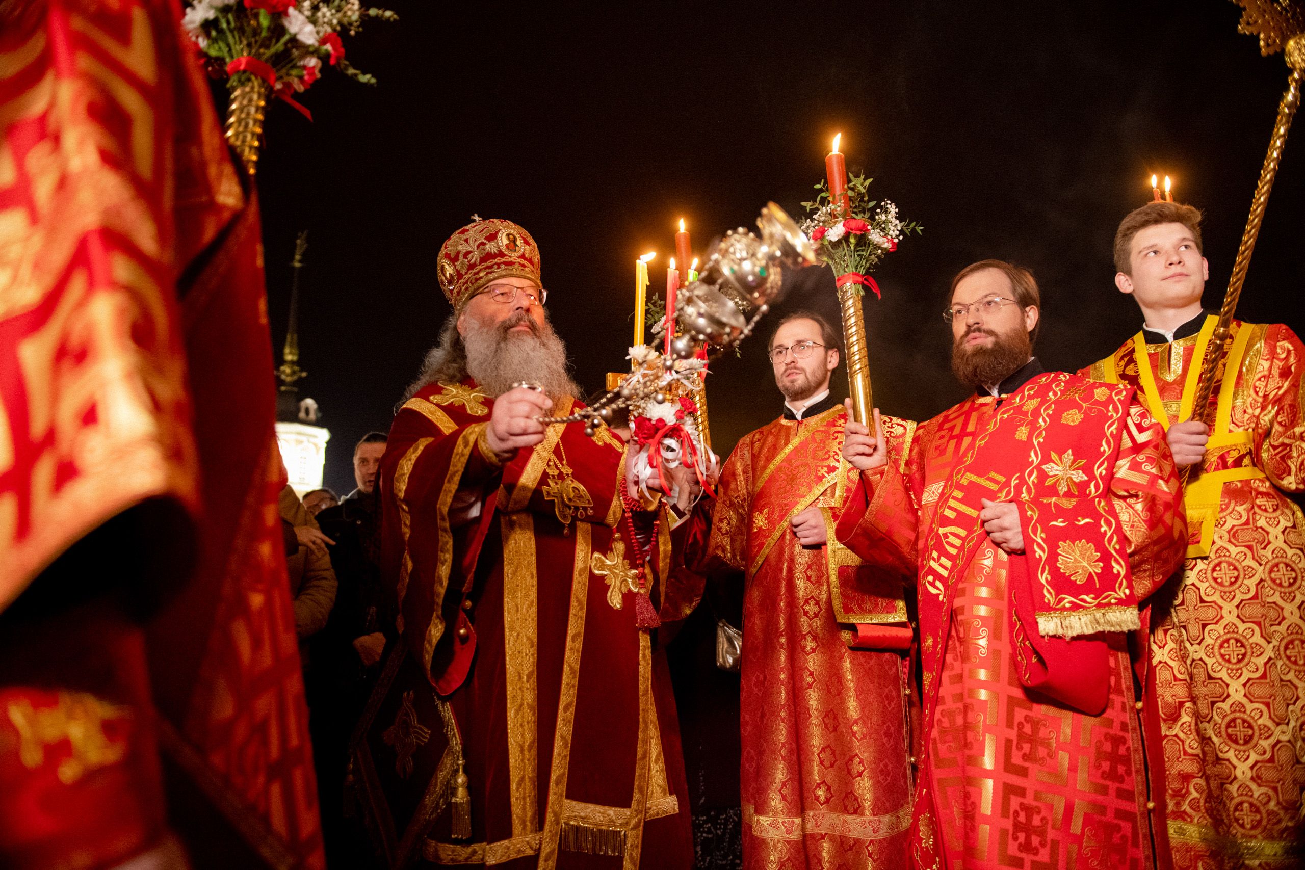 Я очень рад, что в святую пасхальную ночь мы с вами собрались в этом замечательном храме. Здесь молились святитель Гурий, святитель Герман, святитель Ермоген, священномученик Кирилл, митрополит Ефрем и другие светочи веры. В 461 раз в этом соборе совершается празднование Пасхи.