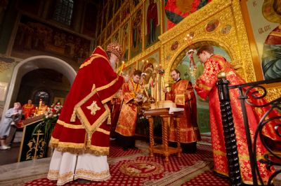 После пения запричастного стиха митрополит Кирилл огласил Пасхальное послание Святейшего Патриарха Московского и всея Руси Кирилла архипастырям, пастырям, диаконам, монашествующим и всем верным чадам Русской Православной Церкви.
