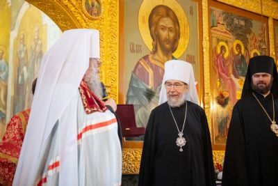 Митрополит Кирилл поблагодарил архипастырей за совместную молитву и преподнёс им на молитвенную память панагии. В завершение Его Высокопреосвященство ещё раз поздравил верующих с праздником Воскресения Христова.