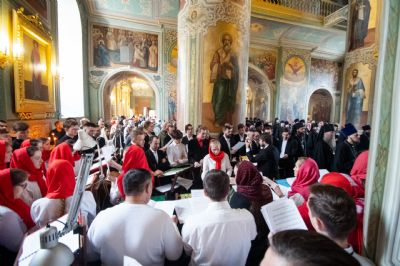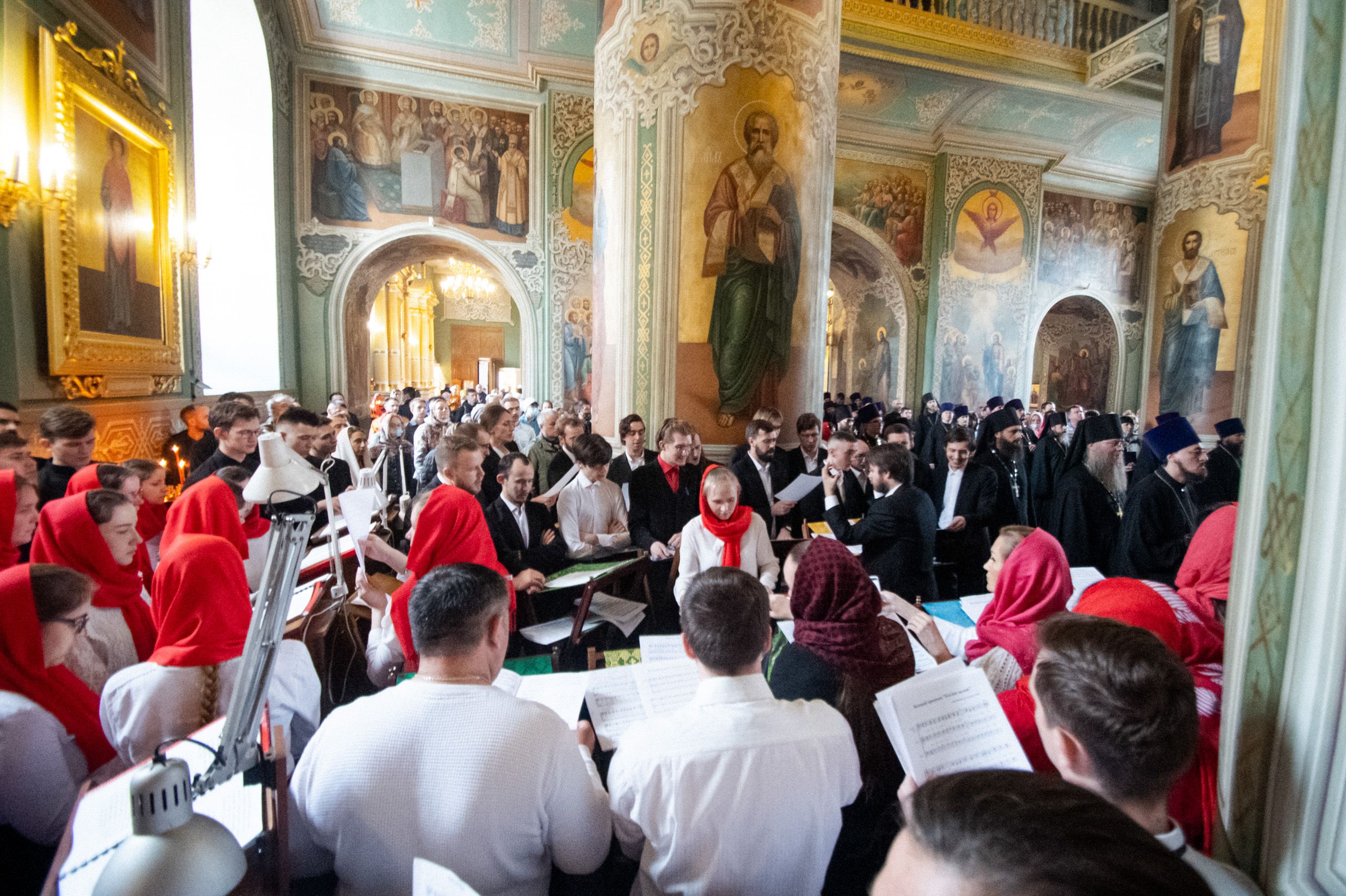 Песнопения исполняли архиерейский мужской хор под управлением Дениса Рогова, смешанный хор Благовещенского собора под управлением Марины Литвиненко, хор духовенства города Казани под управлением протоиерея Иоанна Барсукова.