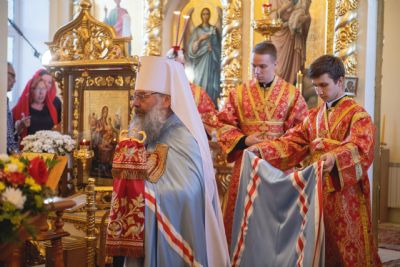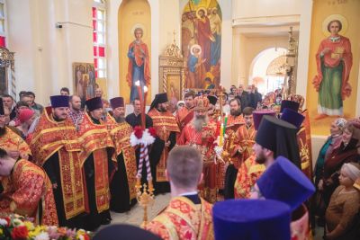 В день памяти Патриарха Тихона митрополит Кирилл совершил Литургию в казанском храме Рождества Христова
