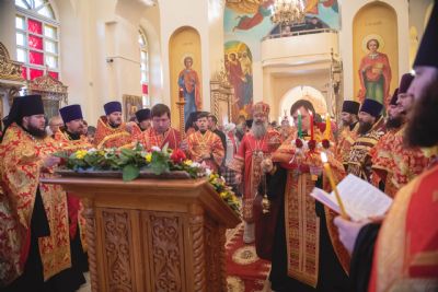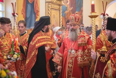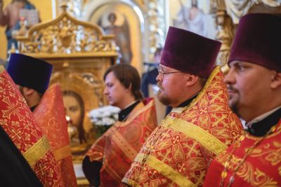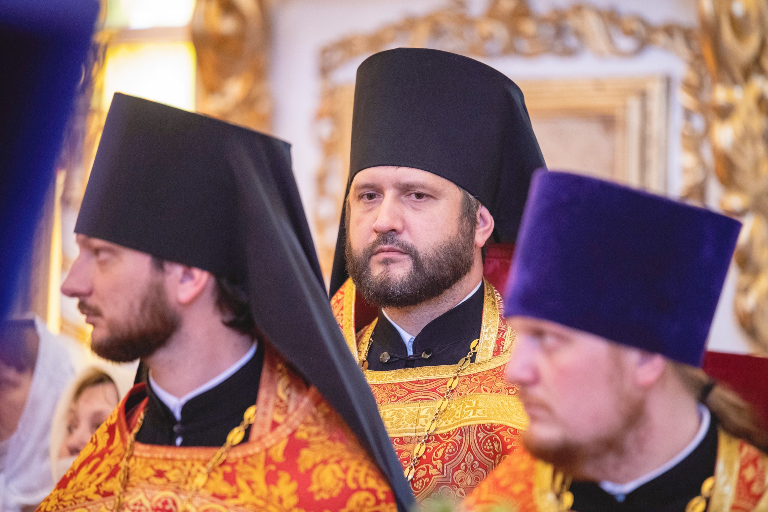 Его Высокопреосвященству сослужили секретарь Татарстанской митрополии иеромонах Кирилл (Корытко), секретарь Казанской епархии протоиерей Владимир Самойленко, благочинный Нижнекамского округа, настоятель Воскресенского храма протоиерей Александр Колчерин, ректор Екатеринбургской духовной семинарии иеромонах Корнилий (Зайцев), благочинные церковных округов Чистопольской епархии, духовенство Казанской и Чистопольской епархий.