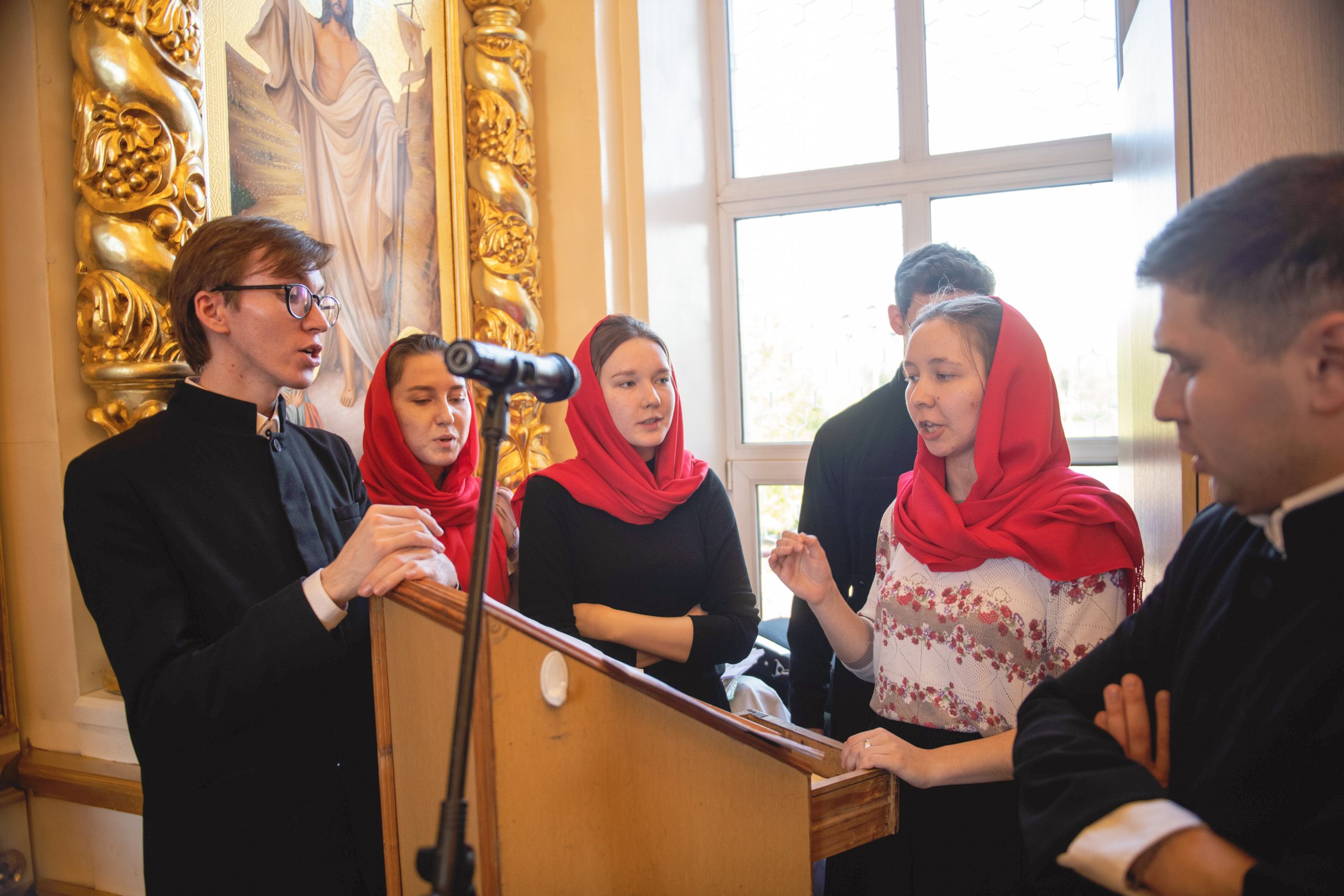 Богослужебные песнопения исполнили хор Казанской духовной семинарии под управлением Полины Минеевой, хор Воскресенского прихода под управлением Ирины Черник.