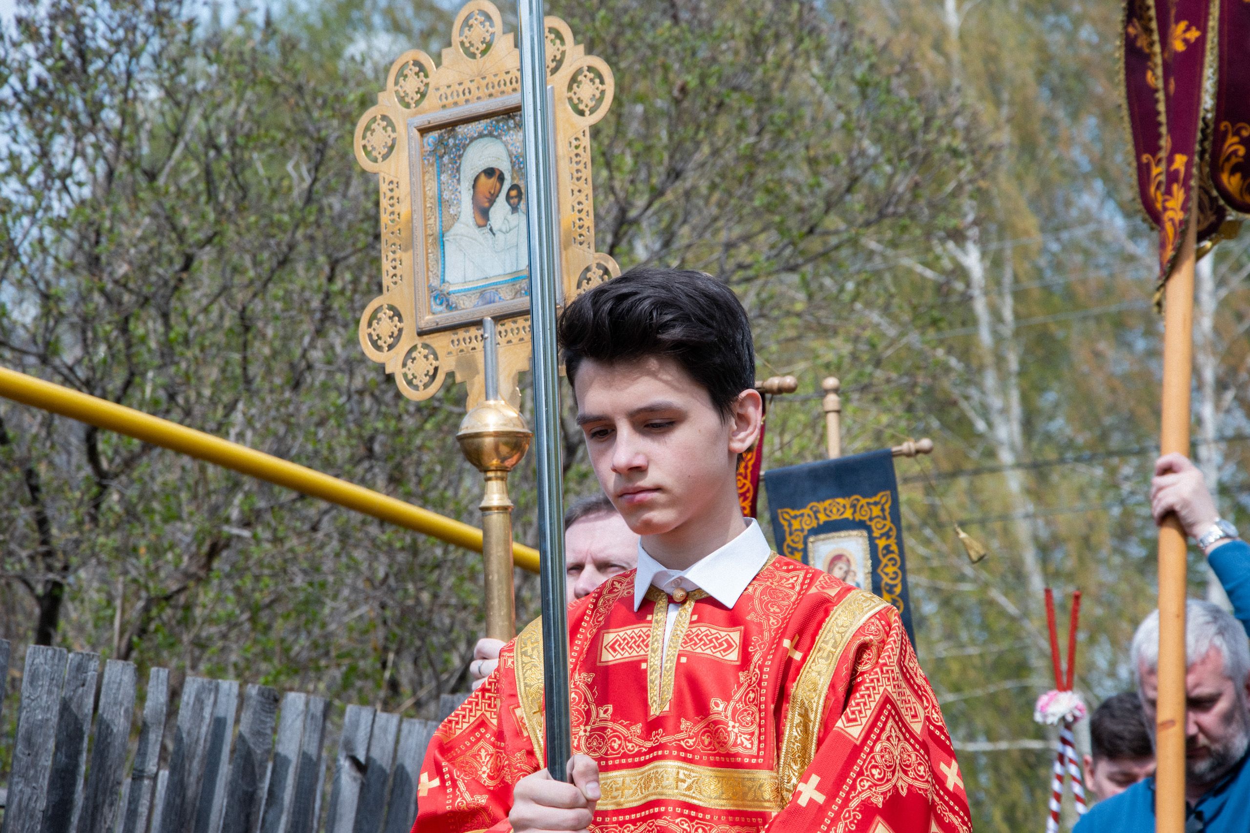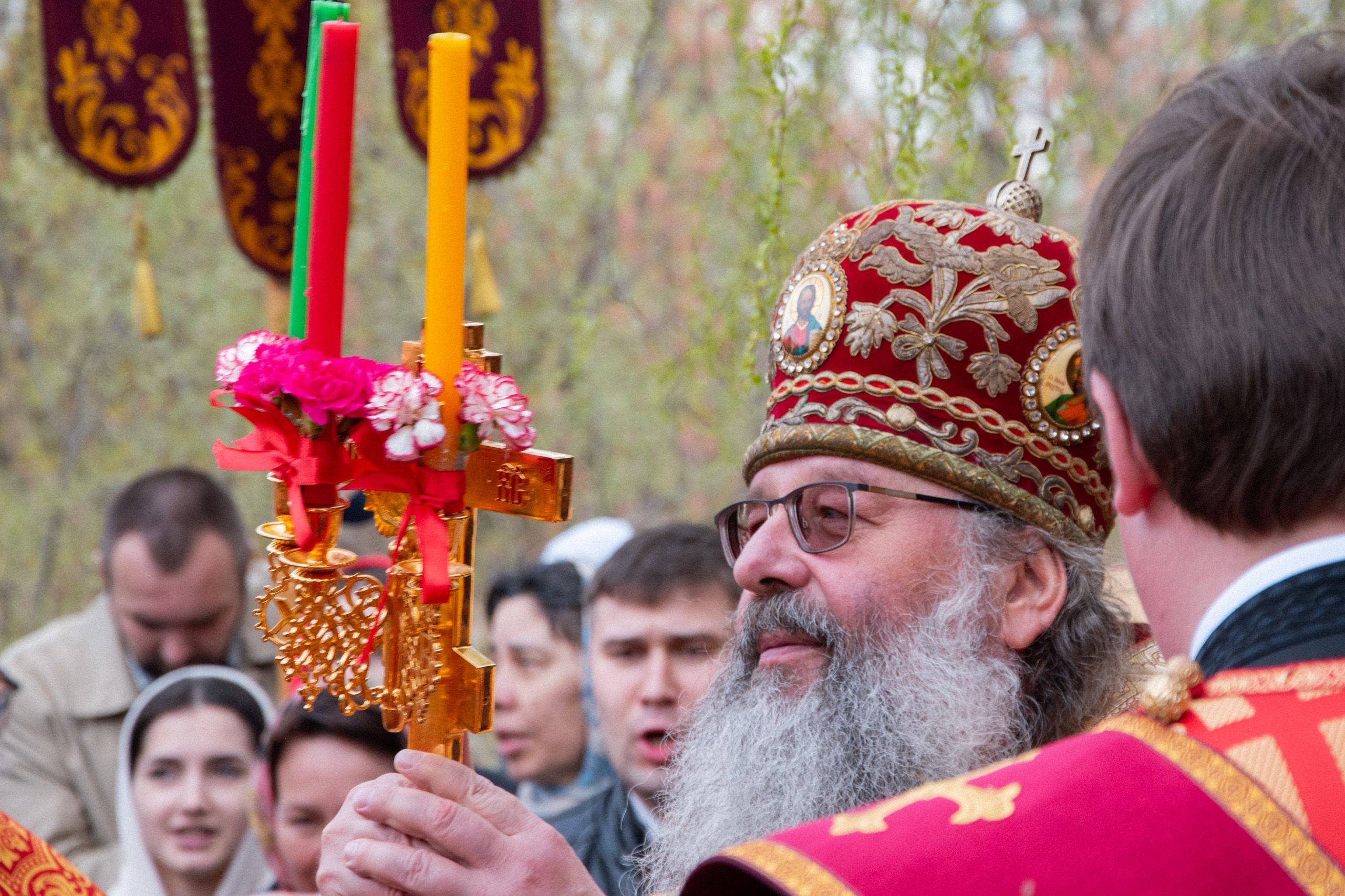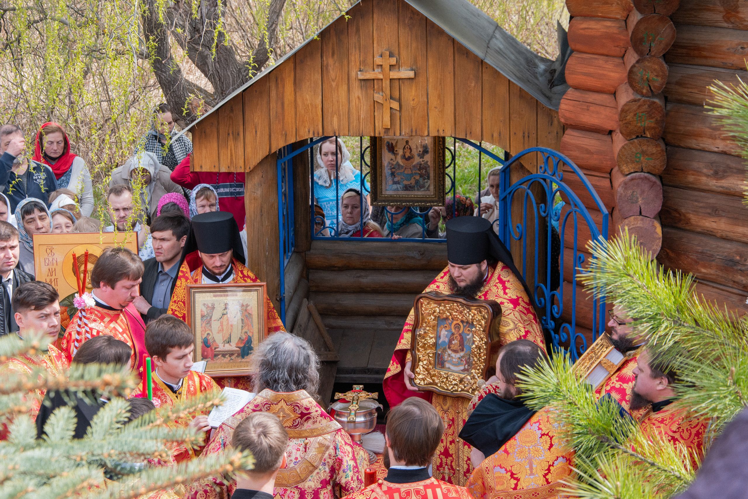 По окончании Литургии духовенство и верующие прошли крестным ходом на источник в честь иконы «Живоносный Источник», где было совершено малое освящение воды.