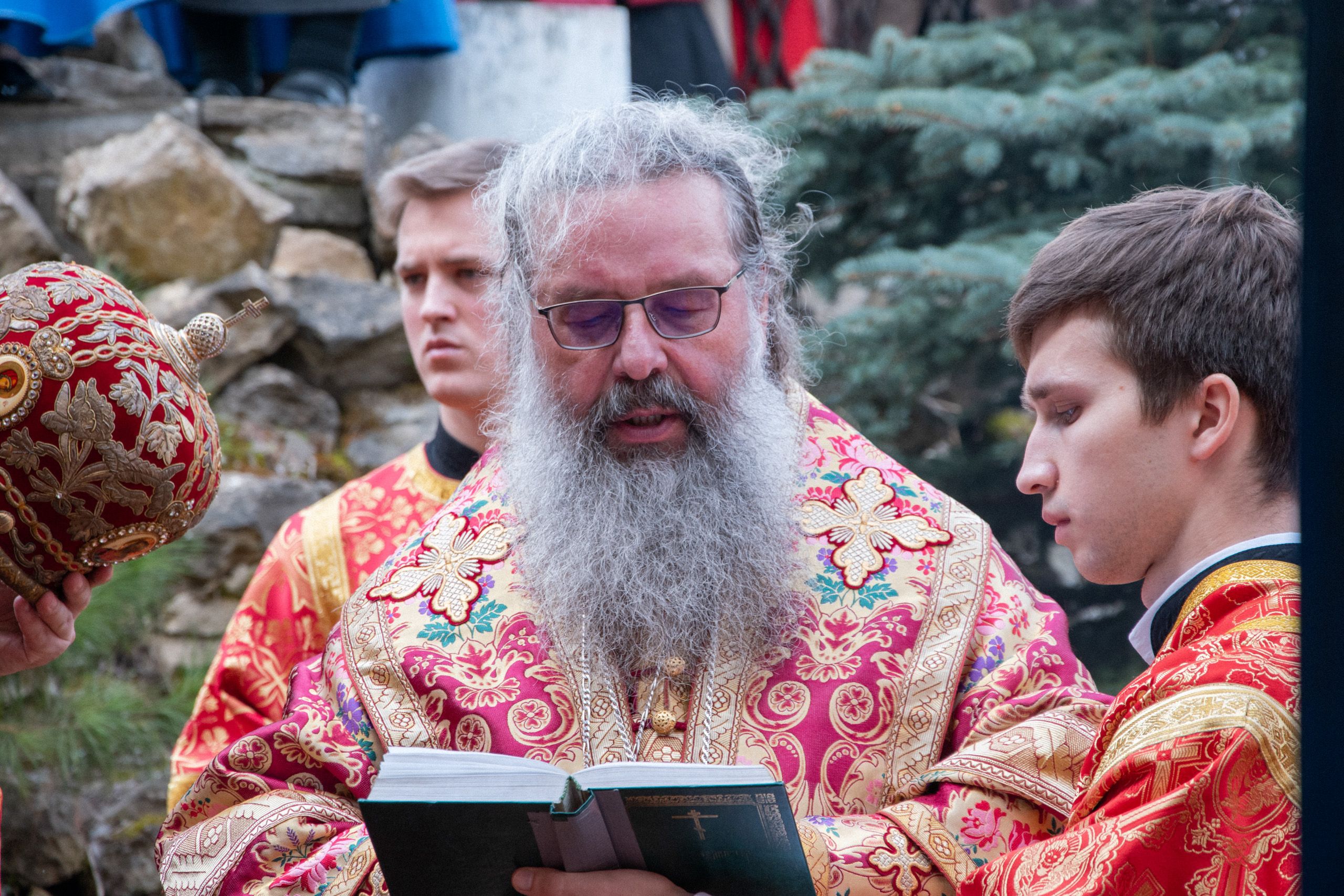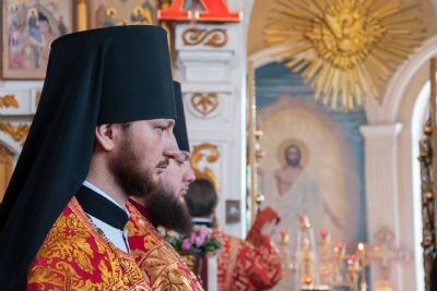 Его Высокопреосвященству сослужили секретарь Татарстанской митрополии иеромонах Кирилл (Корытко), благочинный III Казанского округа протоиерей Алексий Державин, настоятель храма Ярославских чудотворцев протоиерей Николай Троицкий, ректор Екатеринбургской духовной семинарии иеромонах Корнилий (Зайцев), настоятель Иоанно-Кронштадтского храма Казанской духовной семинарии иеромонах Филипп (Кисилев), иеромонах Алексий (Яцейко), клирик Благовещенского собора Казанского кремля иерей Максим Димаев. В алтаре молился настоятель прихода Божией Матери «Живоносный Источник» посёлка Савиново протоиерей Сергий Михайлов.