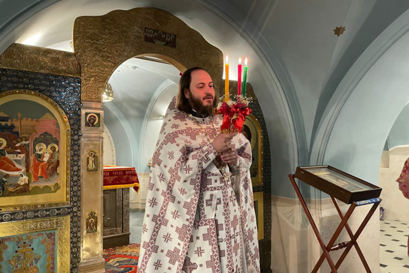 После отпуста Литургии проповедь произнес иеромонах Кирилл (Корытко):