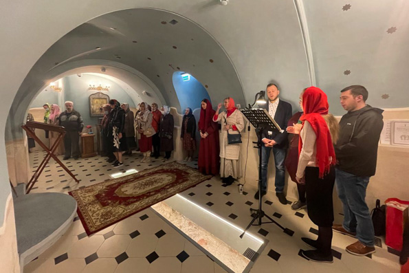 Богослужебные песнопения исполнил архиерейский смешанный хор под управлением Марины Литвиненко. В храме молились прихожане обители и паломники из города Москвы.
