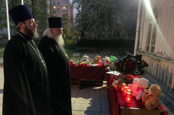 Священнослужители Екатеринбургской епархии возложили цветы и вознесли молитвы об упокоении душ убиенных детей и учителей, выздоровлении раненых и укреплении душевных и телесных сил родственников и близких. Также пастыри оставили запись в книге скорби: