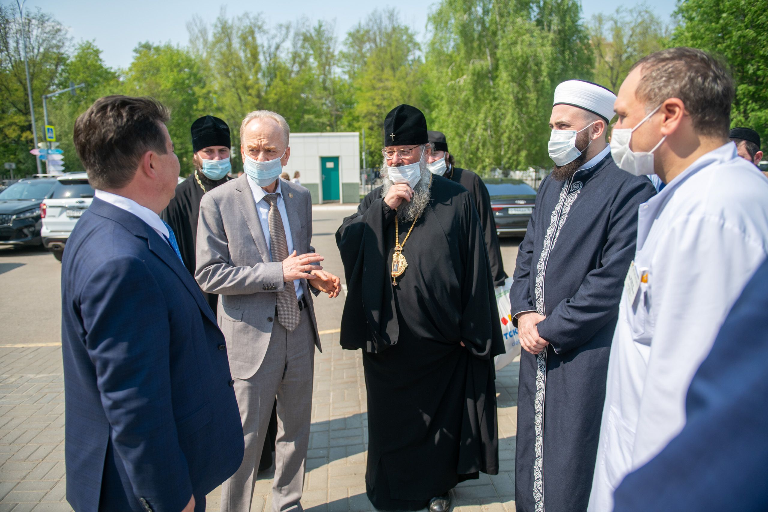 Во дворе больницы состоялась встреча духовных лидеров Татарстана с родителями раненных детей. Правящий архиерей и муфтий выразили им свою поддержку, сказали слова утешения, передали добрые пожелания от духовенства и прихожан православных храмов и мечетей.