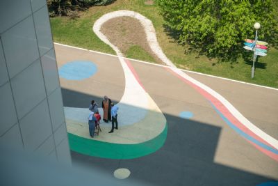 У входа на территорию больничного учреждения гостей встретили министр здравоохранения РТ Марат Садыков и главный врач ДРКБ Айрат Зиатдинов. Айрат Ильгизарович рассказал о состоянии пациентов и ходе их лечения.