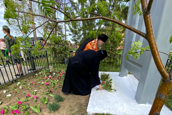 В нынешнем году Фомина Неделя выпала на День Победы. Наместник Богородице-Успенского монастыря игумен Симеон и настоятельница Иоанно-Предтеченского подворья игумения Питирима по ходу праздничного шествия возложили цветы к монументу, посвященному жителям Свияжска, погибшим на фронтах Великой Отечественной войны.