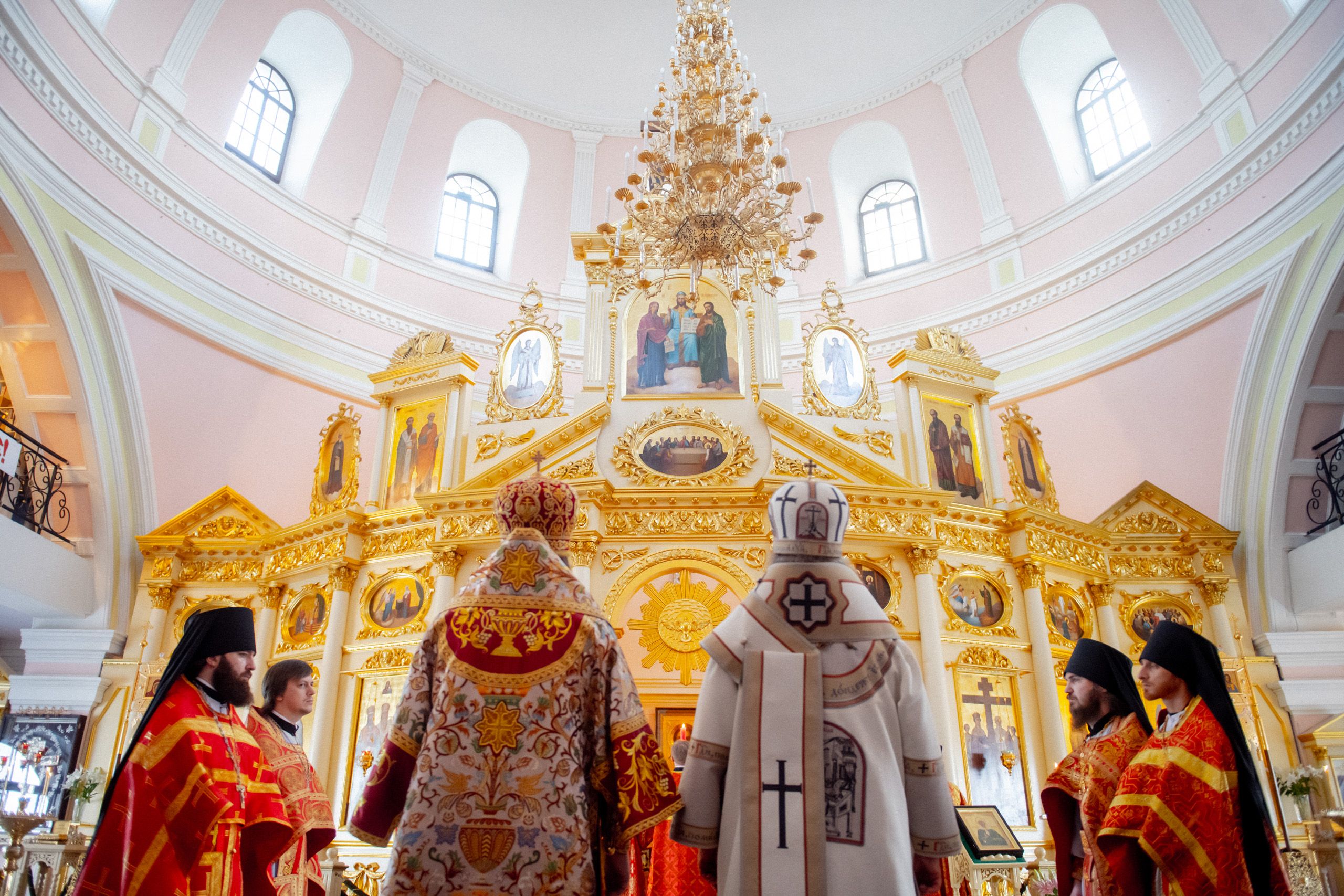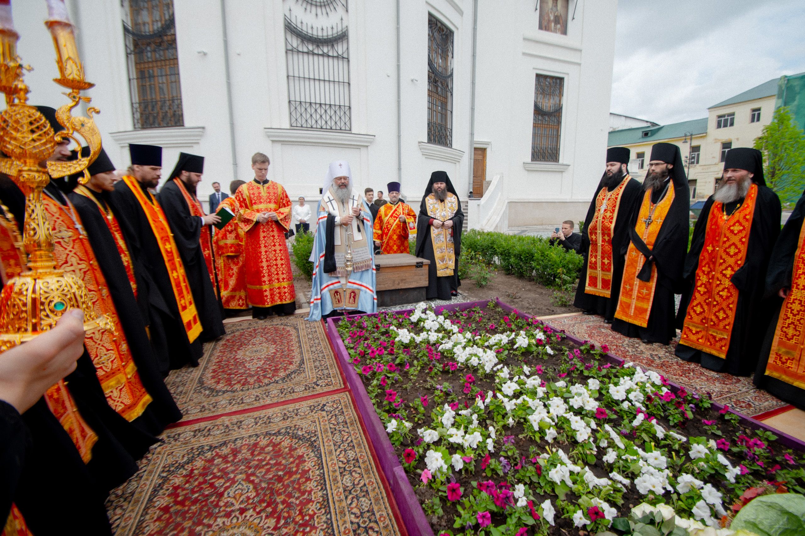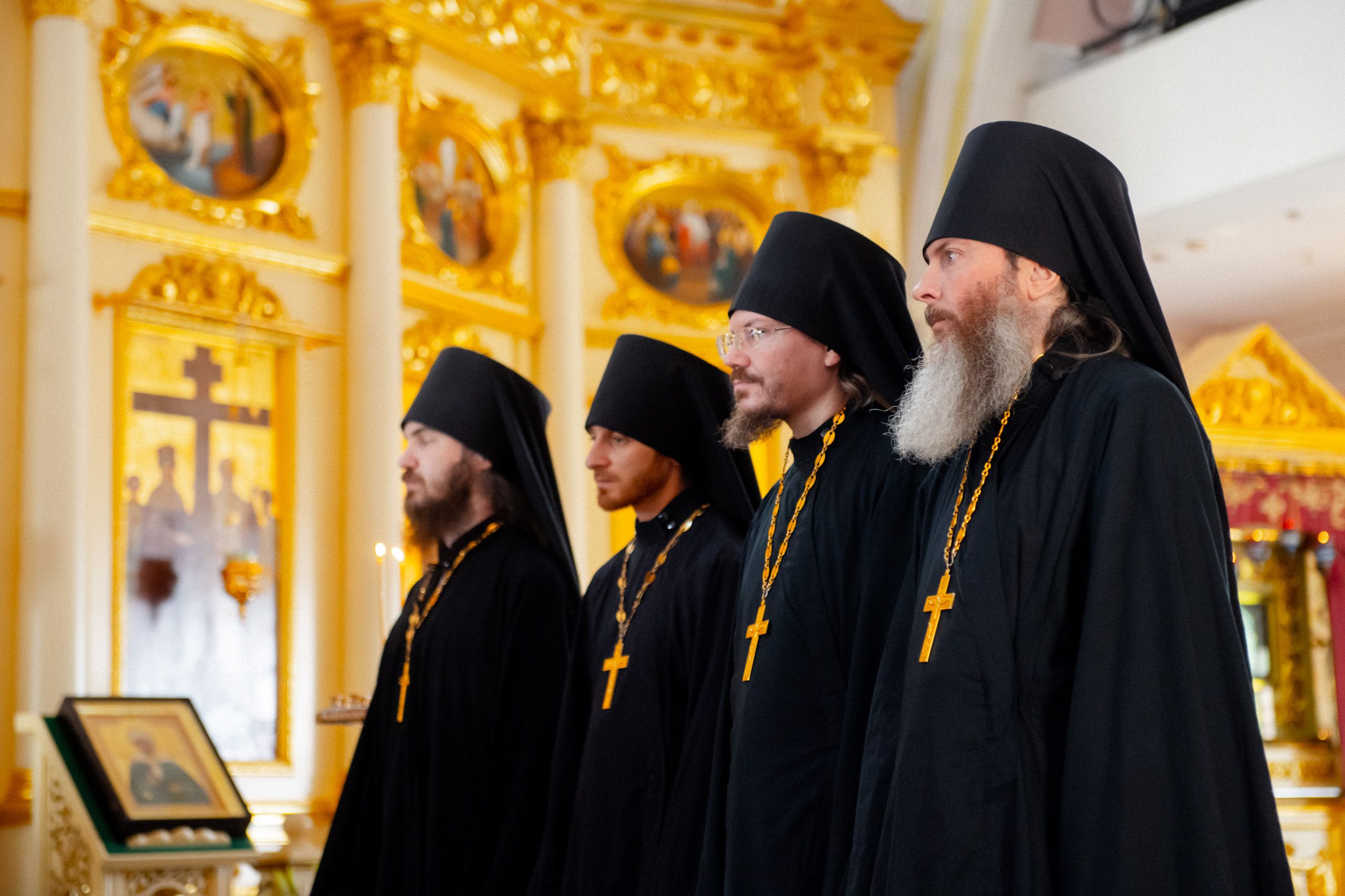 Архипастырям сослужили наместник монастыря игумен Марк (Виленский) с братией обители, секретарь Татарстанской митрополии иеромонах Кирилл (Корытко), настоятель Введенского Кизического мужского монастыря города Казани игумен Пимен (Ивентьев), заведующий канцелярией Казанского епархиального управления протоиерей Александр Павлов, иеромонах Алексий (Яцейко), настоятель храма праведного Иоанна Кронштадтского при Казанской духовной семинарии иеромонах Филипп (Кисилев), клирик Благовещенского собора Казани иерей Димитрий Аликин.