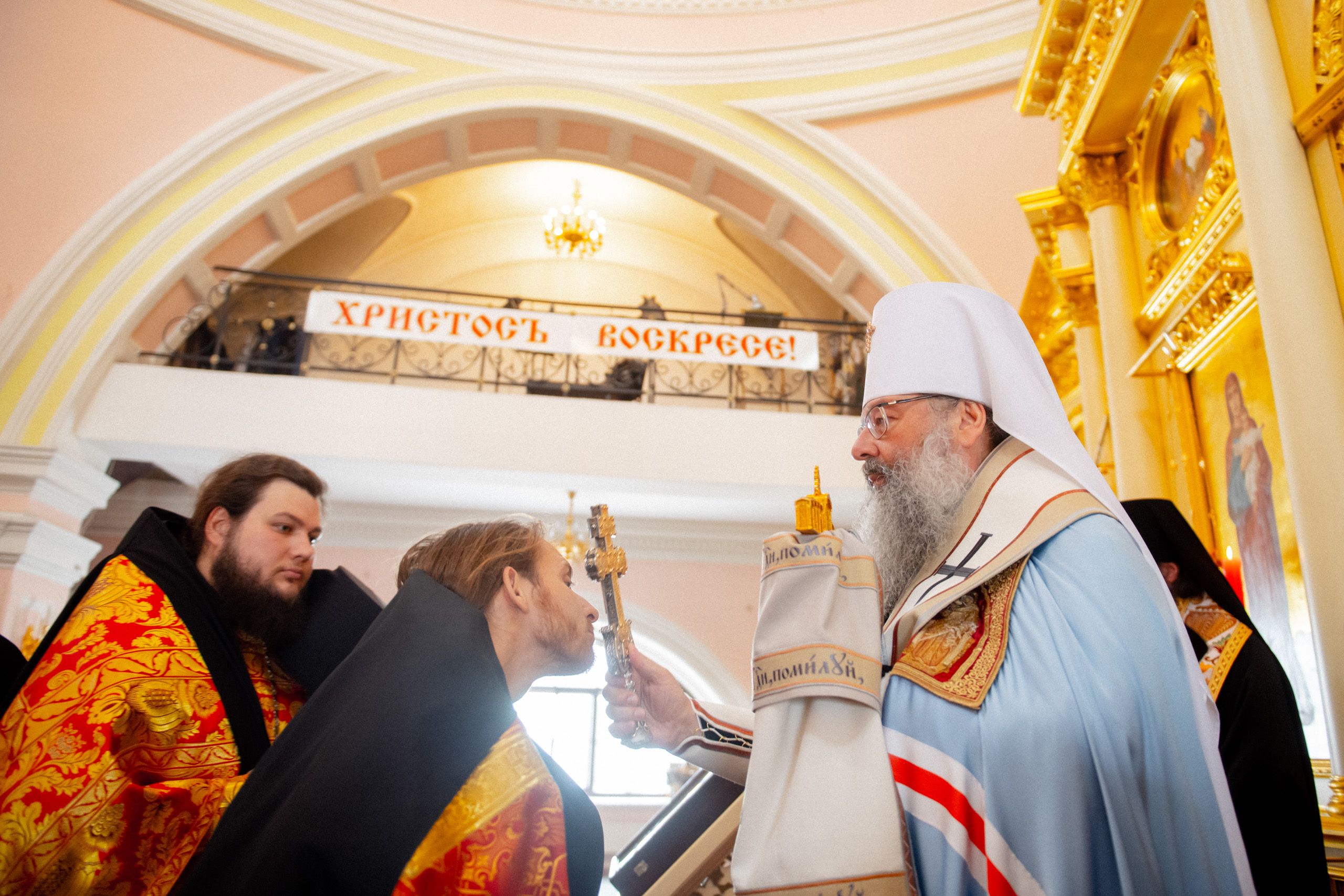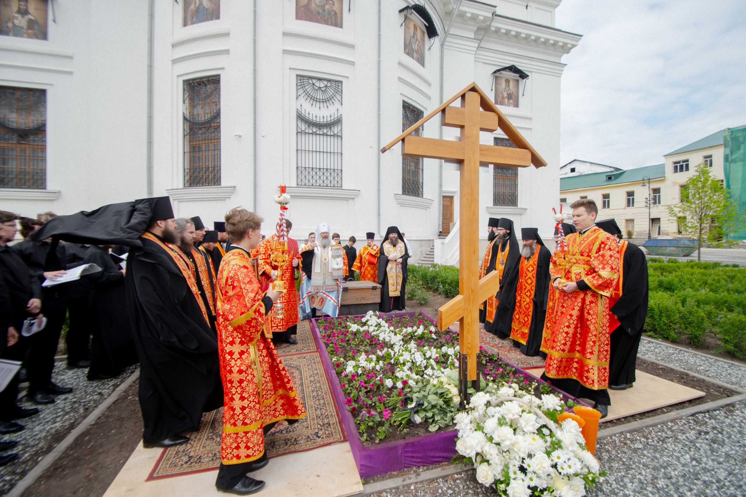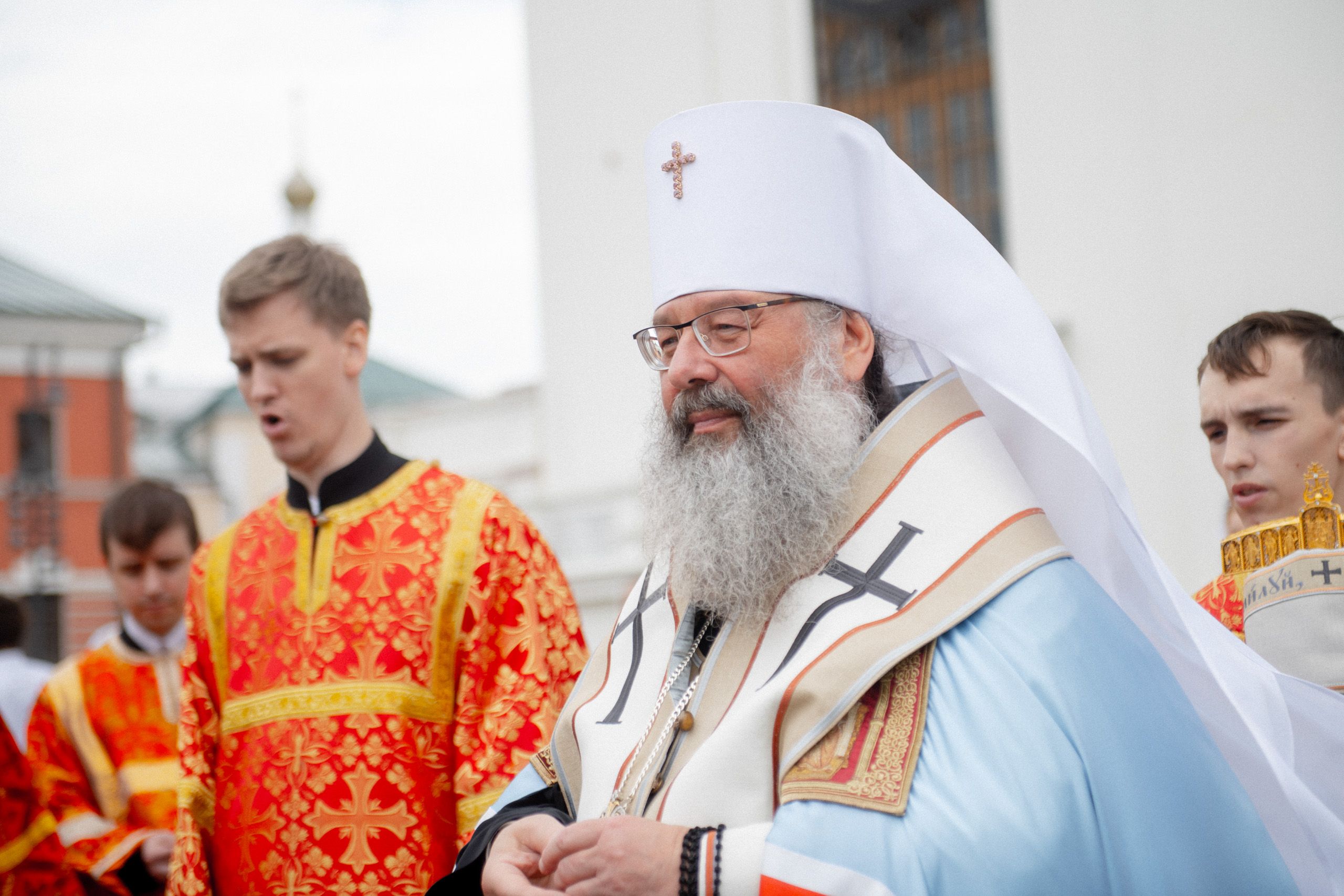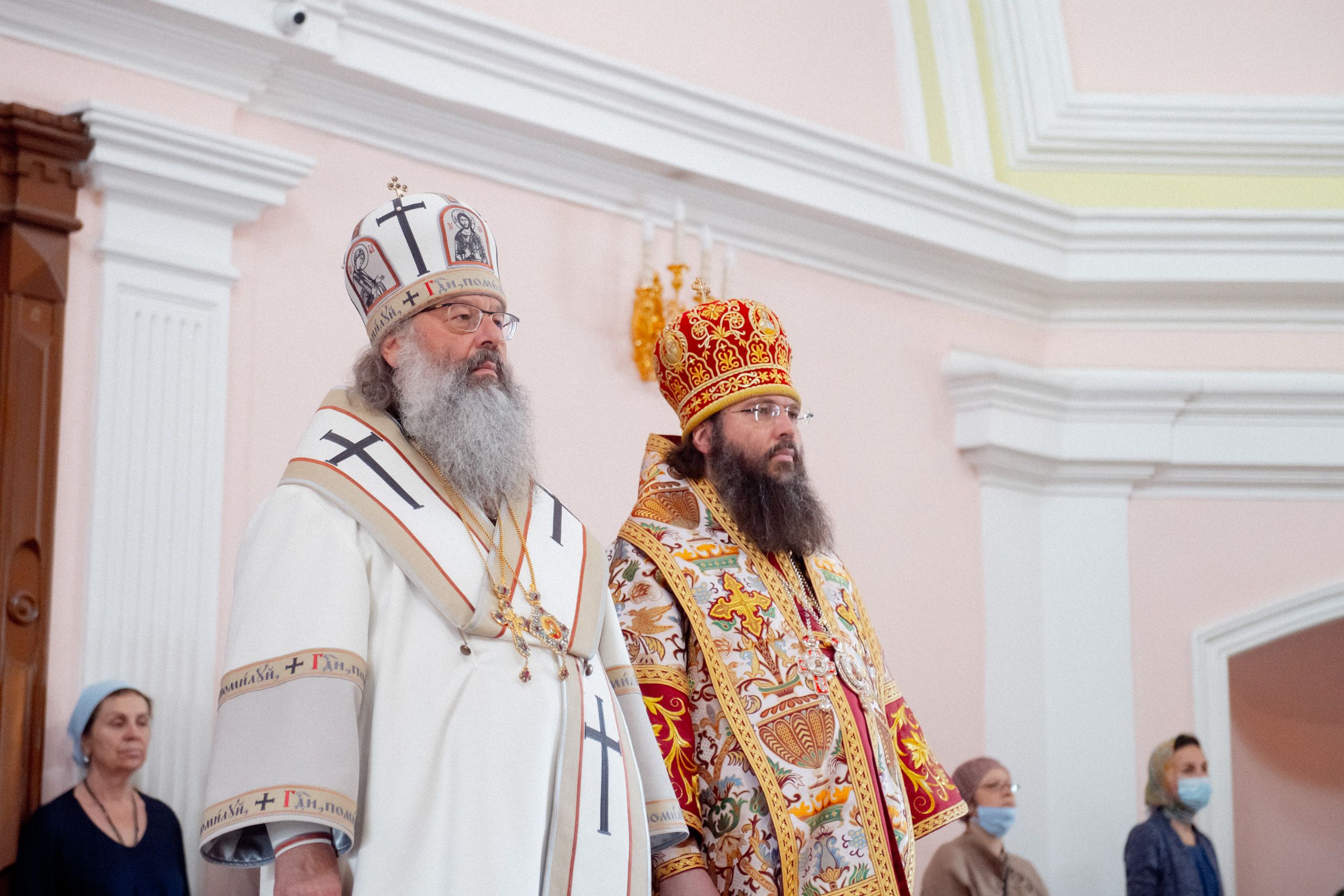Архипастырям сослужили наместник монастыря игумен Марк (Виленский) с братией обители, секретарь Татарстанской митрополии иеромонах Кирилл (Корытко), настоятель Введенского Кизического мужского монастыря города Казани игумен Пимен (Ивентьев), заведующий канцелярией Казанского епархиального управления протоиерей Александр Павлов, иеромонах Алексий (Яцейко), настоятель храма праведного Иоанна Кронштадтского при Казанской духовной семинарии иеромонах Филипп (Кисилев), клирик Благовещенского собора Казани иерей Димитрий Аликин.