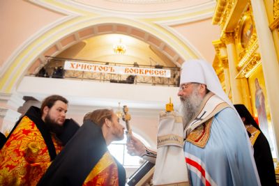 За Литургией были вознесены молитвы об упокоении приснопамятного митрополита Феофана (Ашуркова) — в этот день почившему архипастырю исполнилось бы 74 года.