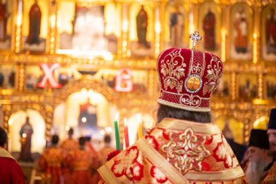 В завершение Литургии духовенством было совершено славление празднику святой Пасхи и просветителям славян — равноапостольным братьям Кириллу и Мефодию. Затем было провозглашено многолетие Его Святейшеству.
