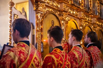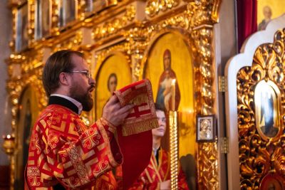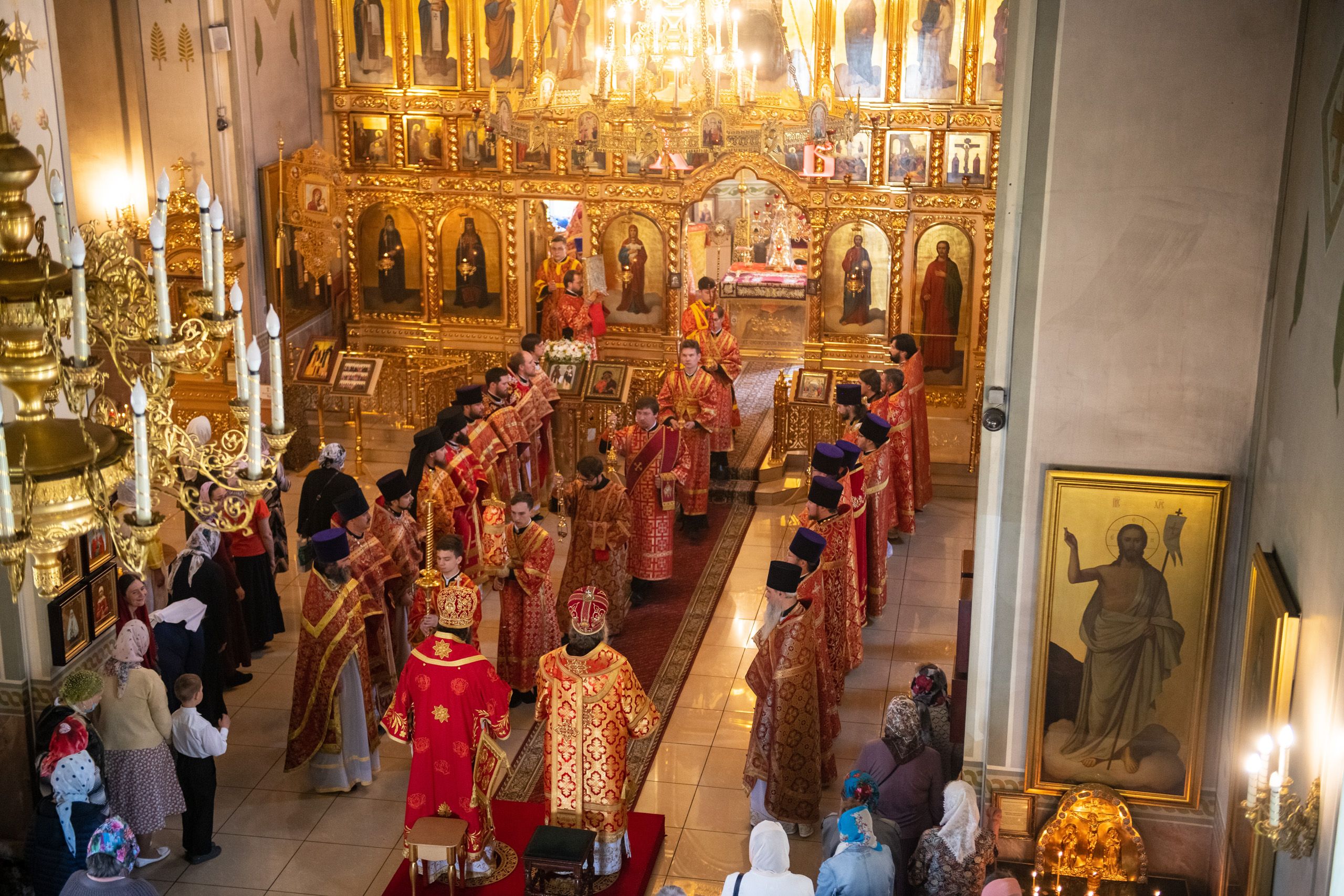 По запричастном стихе проповедь произнёс настоятель Никольского кафедрального собора города Казани протоиерей Иоанн Барсуков.