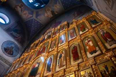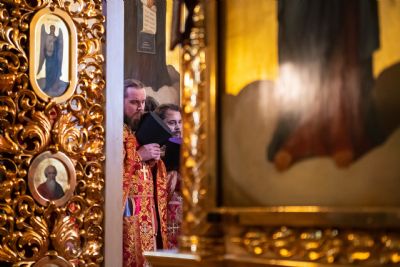 На сугубой ектении возносились особые молитвы о здравии и благоденствии ныне тезоименитого Предстоятеля Русской Православной Церкви Святейшего Патриарха Московского и всея Руси Кирилла.