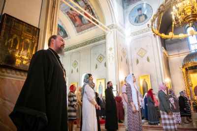 За богослужением молились руководители и педагоги воскресных школ, а также миряне Казанской и Чистопольской епархий, занятые на ниве духовного образования. Песнопения исполнил хор архиерейского подворья под управлением Александра Гринина.