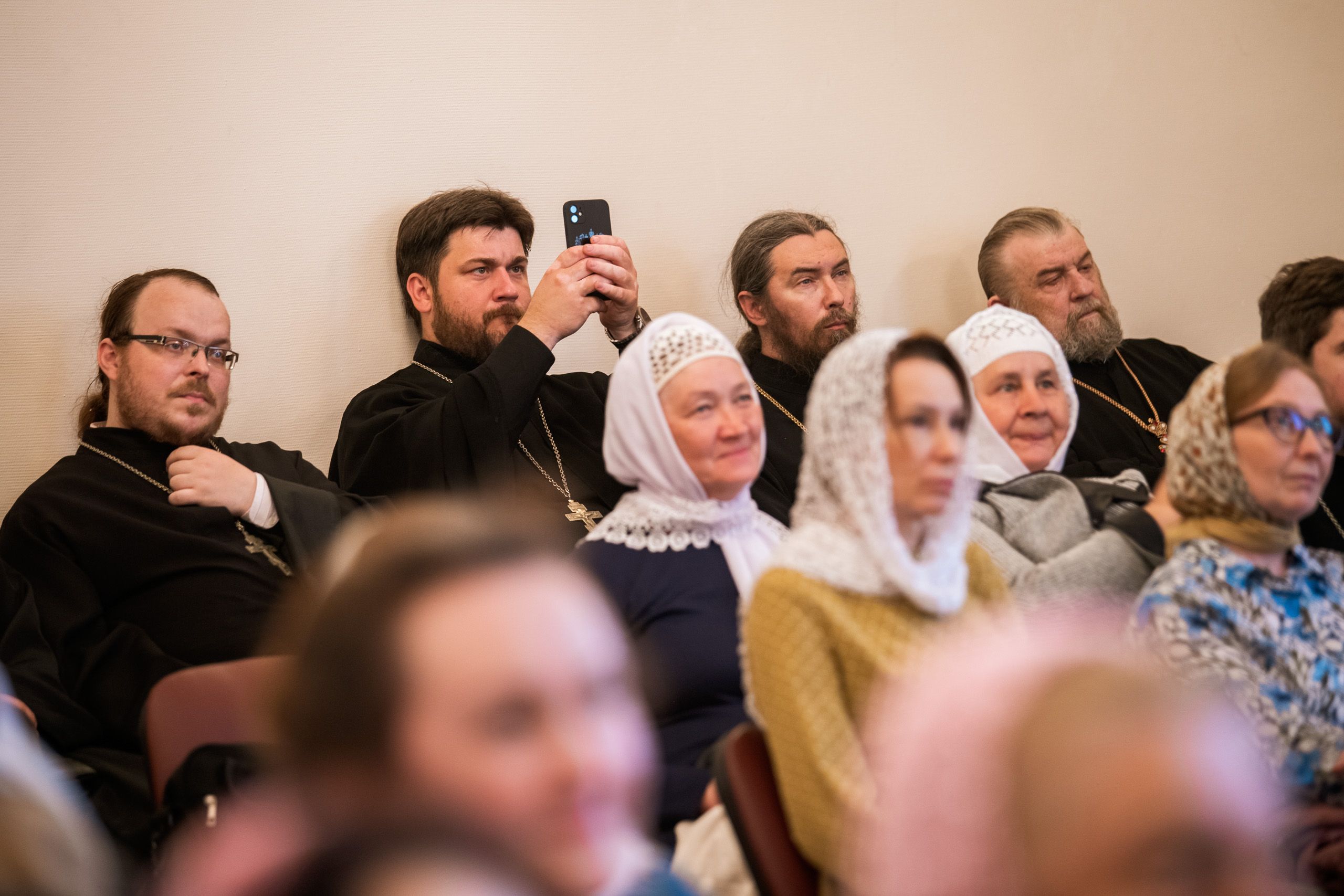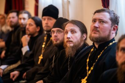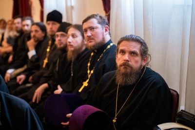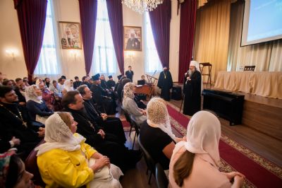 Митрополит Кирилл рассказал собравшимся об опыте некоторых приходов, где дети приобщаются Святых Христовых Таин на Литургии, которая служится с пояснениями и допустимыми сокращениями. Также глава митрополии побеседовал с участниками встречи о важности сопровождения церковных торжеств колокольным звоном, об организации работы школы звонарей.