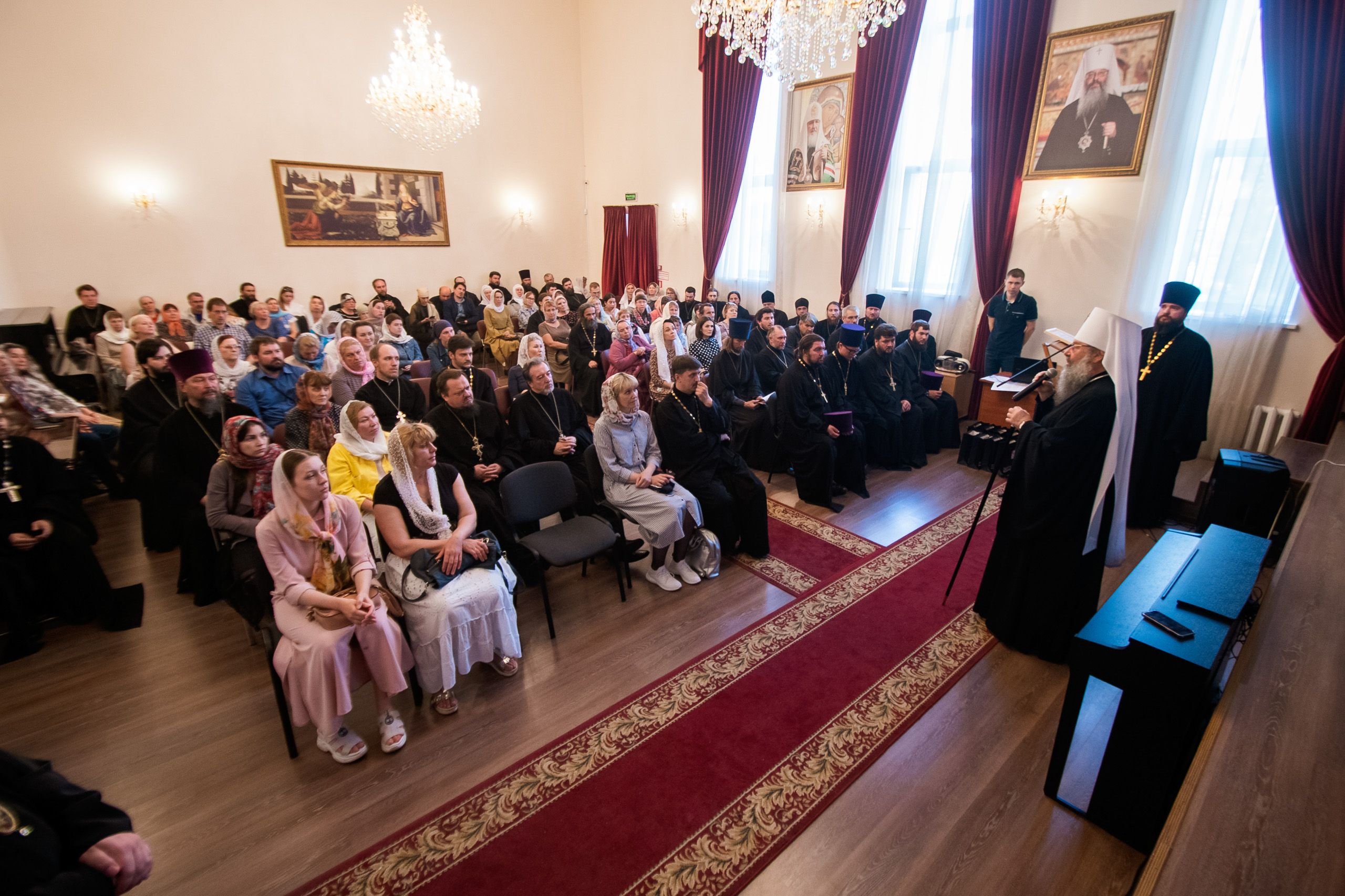 Обращаясь к духовенству, работникам храмов и педагогам воскресных школ, владыка Кирилл отметил, что жизнь воскресной школы, как и жизнь прихода, должна строиться вокруг Евхаристической Чаши.