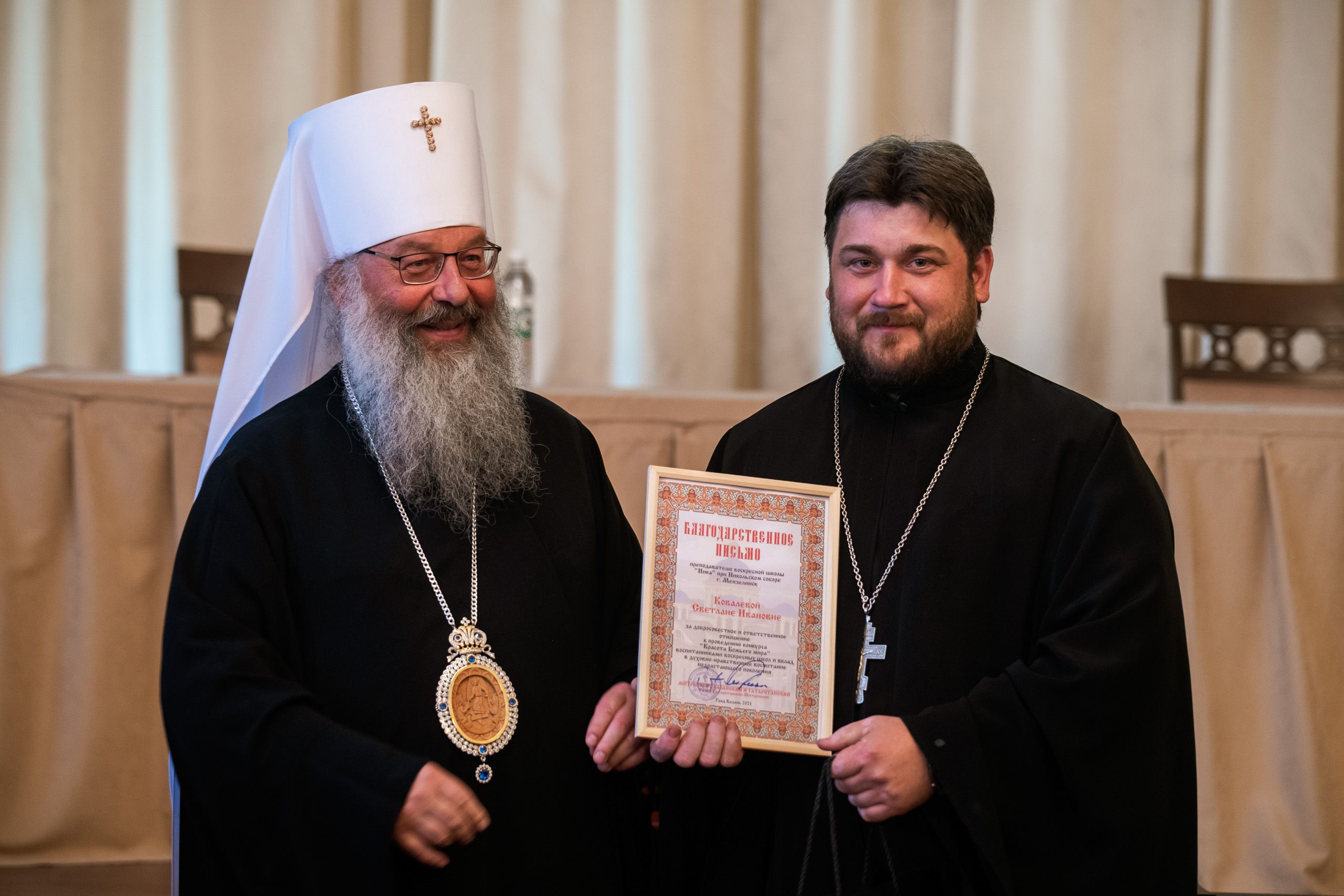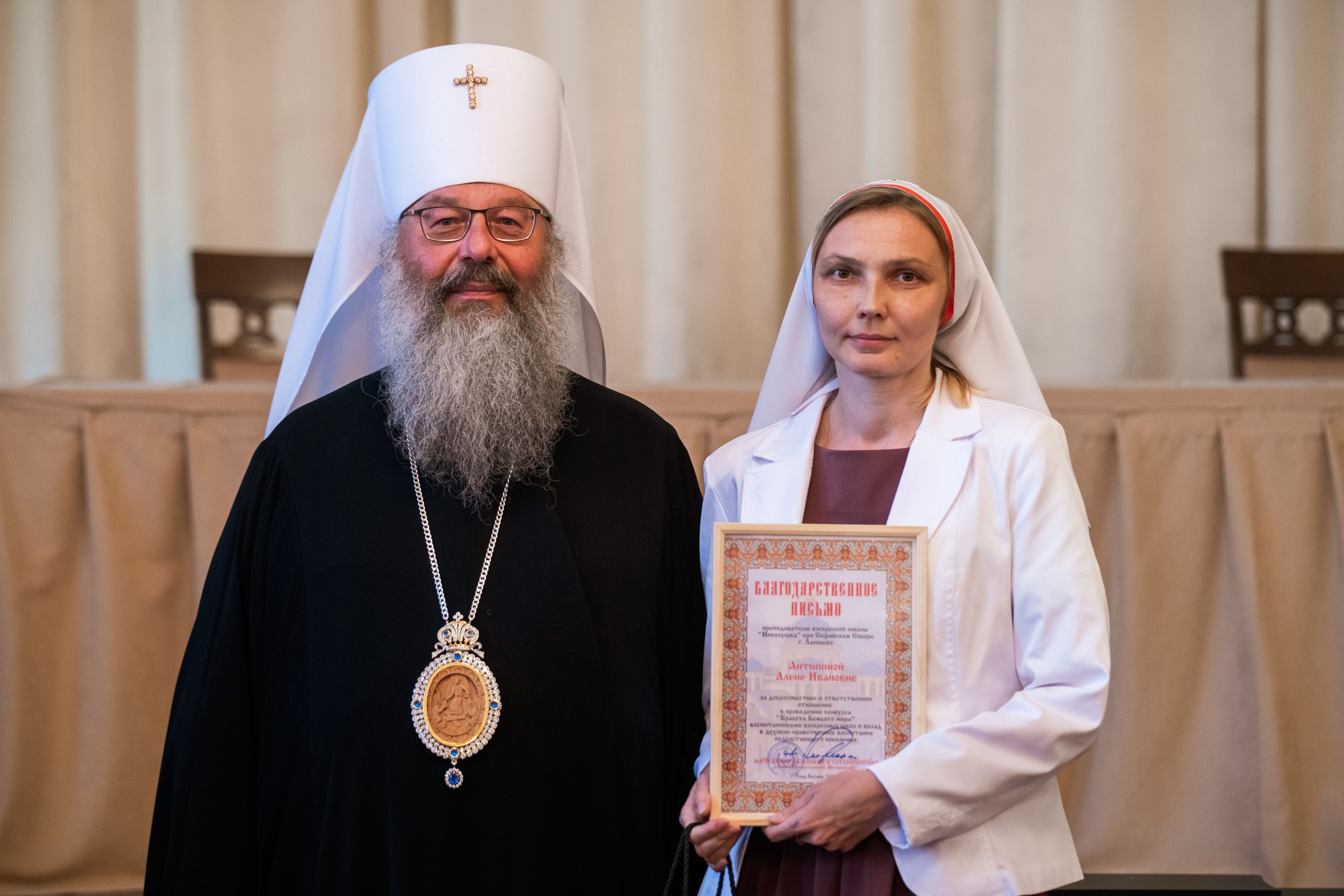 На встрече состоялось торжественное награждение педагогов воскресных школ, воспитанники которых приняли активное участие в конкурсе детского творчества «Красота Божьего мира».