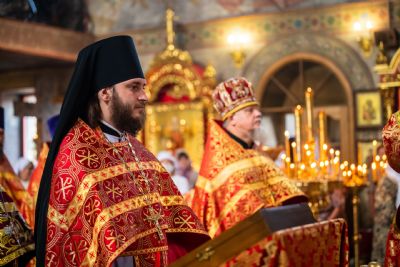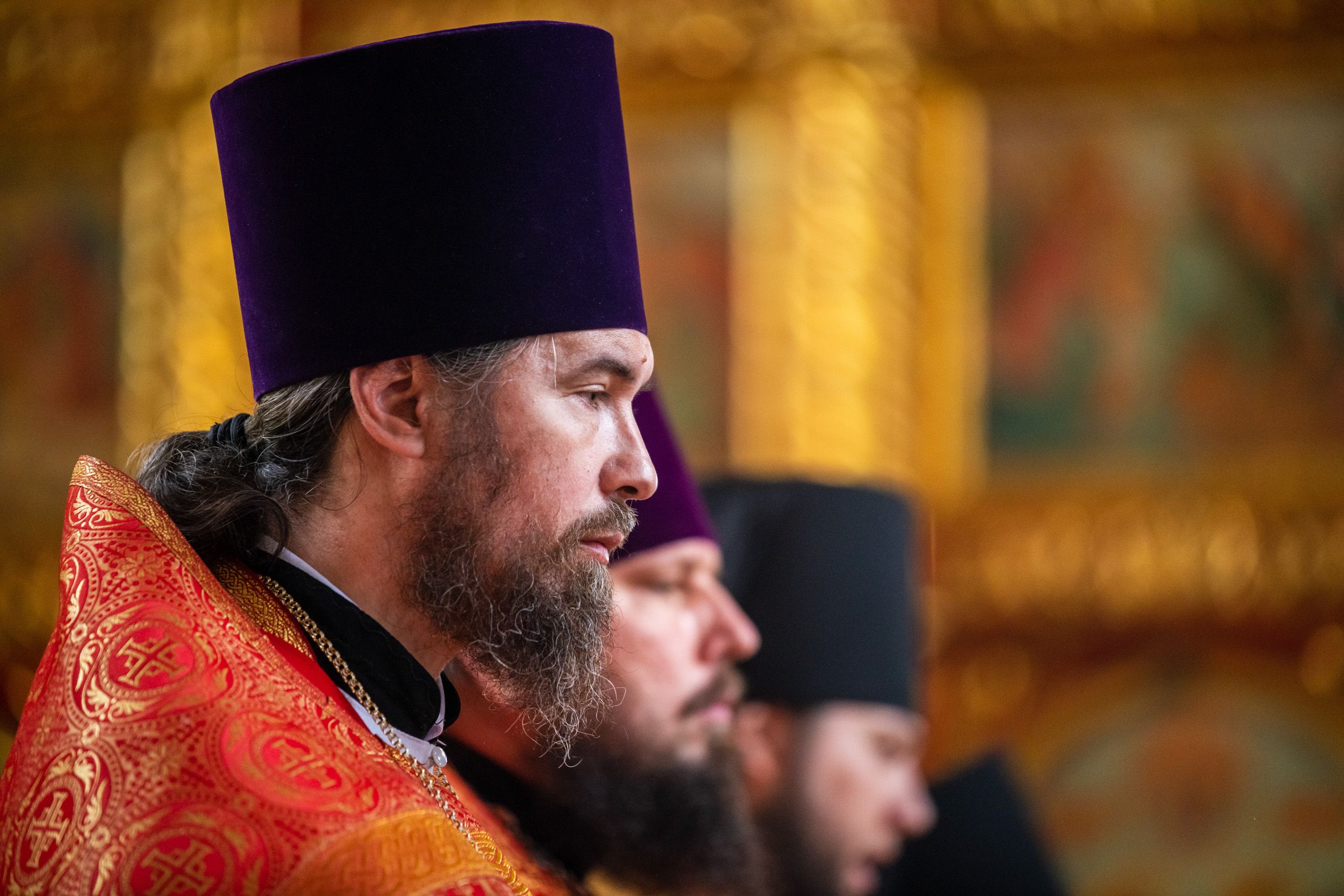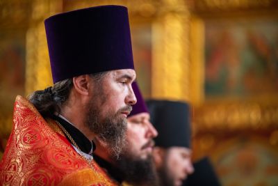 Его Высокопреосвященству сослужили секретарь Татарстанской митрополии иеромонах Кирилл (Корытко), секретарь Казанской епархии протоиерей Владимир Самойленко, благочинный Алексеевского округа, настоятель Воскресенского храма протоиерей Павел Чурашов, старший звонарь Троице-Сергиевой Лавры игумен Антоний (Зинин), священнослужители Казанской и Чистопольской епархий.