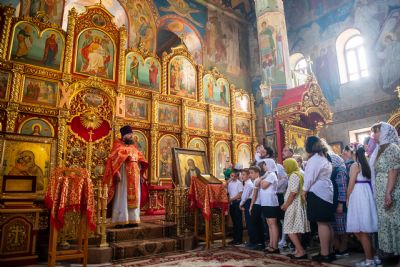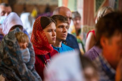 Богослужебные песнопения исполнил смешанный хор под управлением Марины Литвиненко. В храме молились прихожане, жители поселка Алексеевское, паломники из разных районов Республики Татарстан и других регионов, прибывшие в поселок для участия в фестивале колокольного звона «Алексеевские перезвоны».