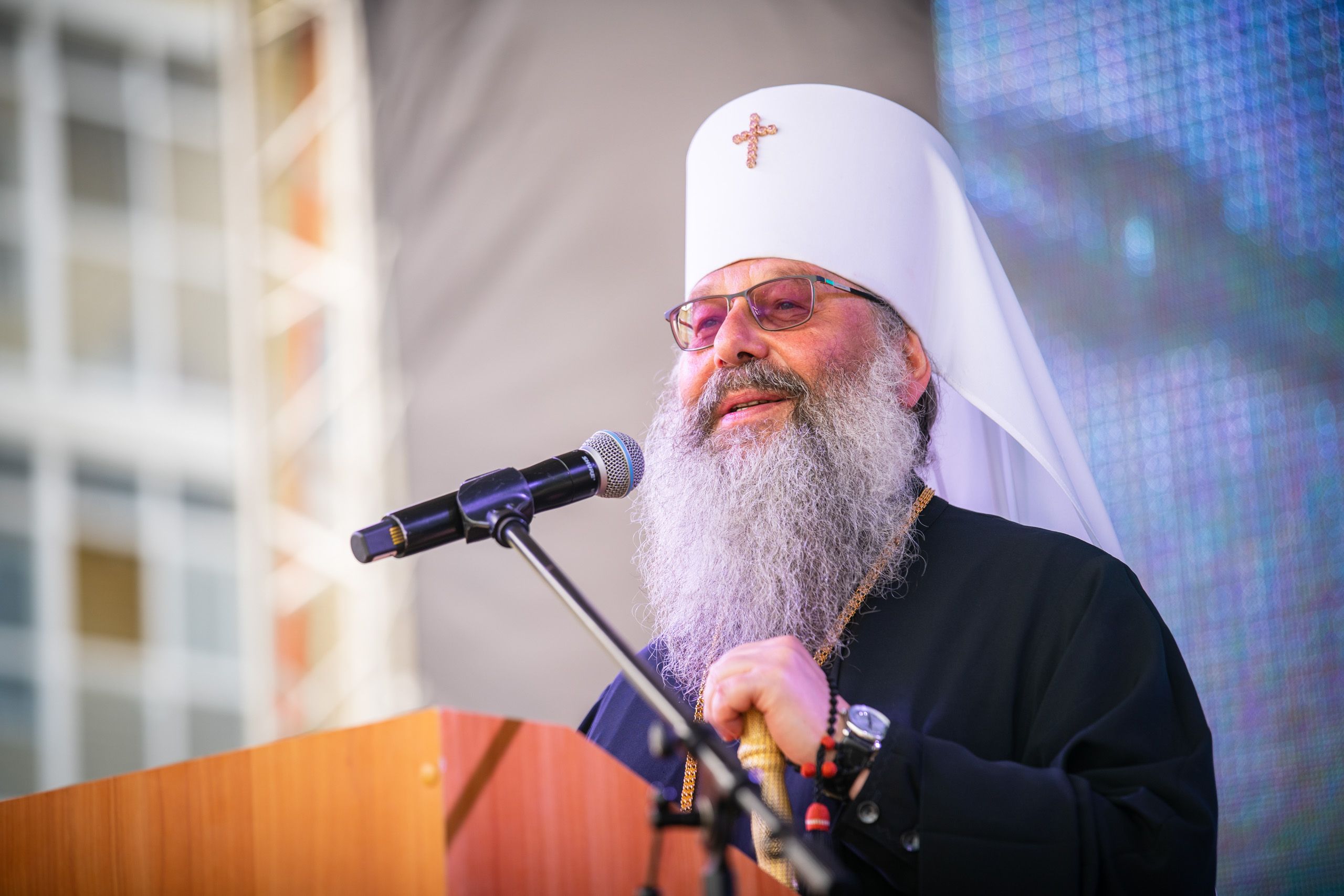 Низкий поклон всем вам за любовь к своей национальной культуре, к своей вере; за стремление сохранить свою самобытность. Надеемся, что Господь Бог сохранит наш Татарстан и всю нашу Россию в мире и благоденствии. Особым знаком Божиего благоволения является воссоздание Казанского собора на месте явления Казанской иконы Божией Матери, которое совершается трудами Фонда «Возрождение», возглавляемого первым президентом нашей Республики Минтимером Шариповичем Шаймиевым. Хотел бы сердечно поблагодарить его и всех соработников за этот дар, дар возвращения святыни нашему городу, нашей стране, нашей Церкви.