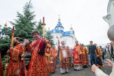 Проповедь по запричастном стихе произнёс настоятель Введенского Кизического мужского монастыря города Казани игумен Пимен (Ивентьев). После службы вокруг храма был совершён пасхальный крестный ход.