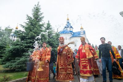 Мы рады, что в нашем городе есть святое место, прославленное силой и подвигами многих мучеников и подвижников. Хотелось бы, чтобы в дни Светлой Пасхи мы наполнялись пасхальной радостью, душой приобщались к празднику праздников и сердцем чувствовали, что воскресший Христос посреди нас есть и будет. Ощущение присутствия Бога в нашей жизни должно затмевать все наши горести и сложности. Тот, кто пребывает с Богом, живёт в вечной радости. Многие наши печали и скорби случаются, потому что мы пребываем не с Богом, а сами с собой. Надо жить в мире с Богом, с окружающими людьми. Тогда Господь даст нам радость ощущения вечной Пасхи Христовой в Царстве Небесном, чего я желаю всем нам с вами. Божией помощи вам, утешения! Христос Воскресе!