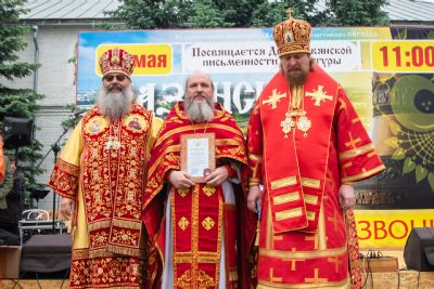 Митрополит Кирилл преподал верующим благословение и вручил благодарственные письма звонарям, руководителям ансамблей, фольклорных и творческих коллективов, которые приняли участие в фестивале колокольного звона «Алексеевские перезвоны».