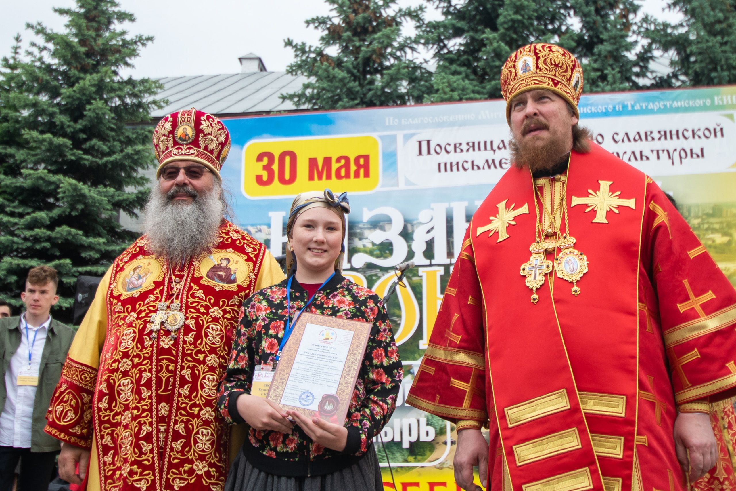 Хотел бы сказать слова благодарности отцу Павлу Чурашову, настоятелю Воскресенского храма посёлка Алексеевское. Отец Павел на протяжении многих лет организует фестиваль колокольного звона в Алексеевском. В этом году фестиваль проводится и в Казани. Находиться рядом с колоколами, которые есть в Зилантовой обители, и не слышать их звон — неправильно или даже преступно.