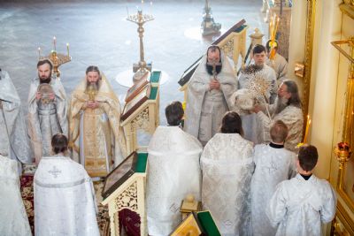 Песнопения исполнил архиерейский мужской хор под управлением Дениса Рогова.