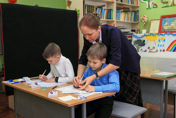 «Ребята на занятиях учатся читать, писать, работать у доски и отвечать на вопросы преподавателей. Они ответственно относятся к выполнению заданий», — сообщил отец Георгий.